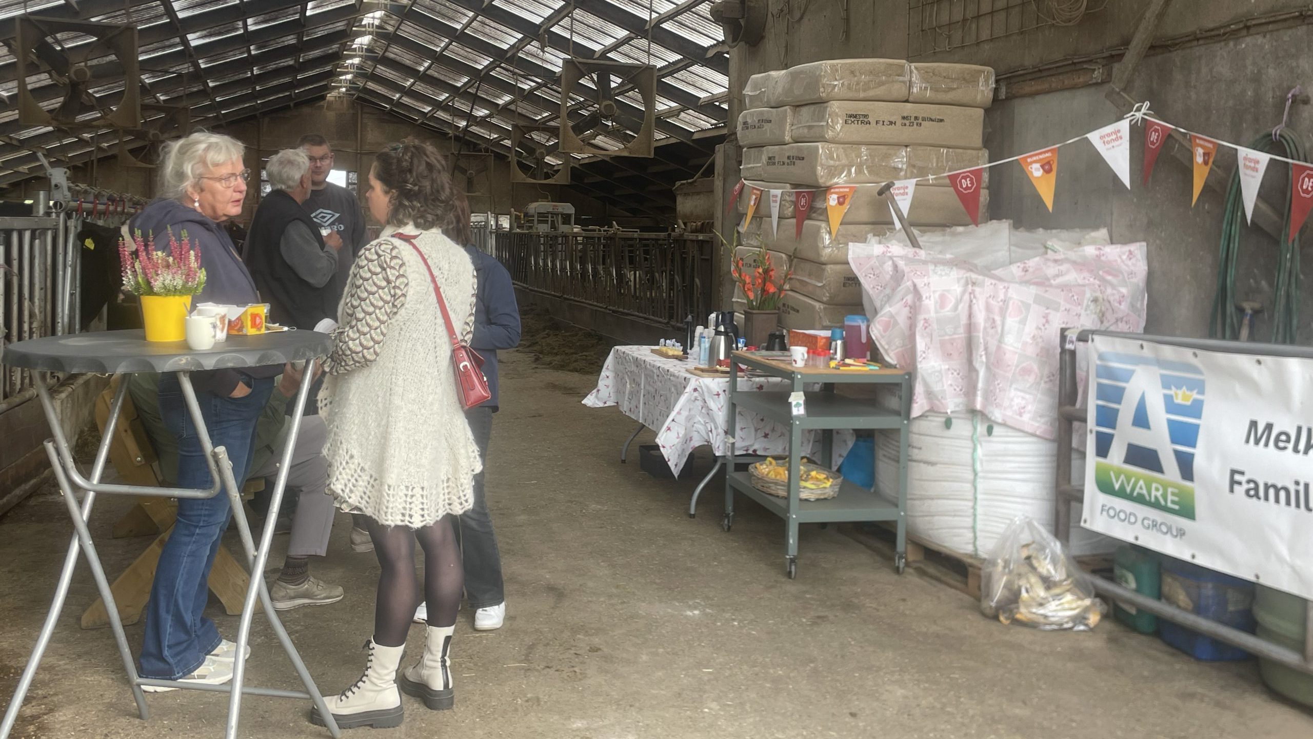 De familie Turkstra opende hun boerderij speciaal voor de buurt. Tussen de koeien konden bezoekers genieten van koffie, thee en koek. Voor de kinderen was er melk, drinkyoghurt en een koetjesreep. Ook was er boerderijbingo voor de jongste bezoekers.