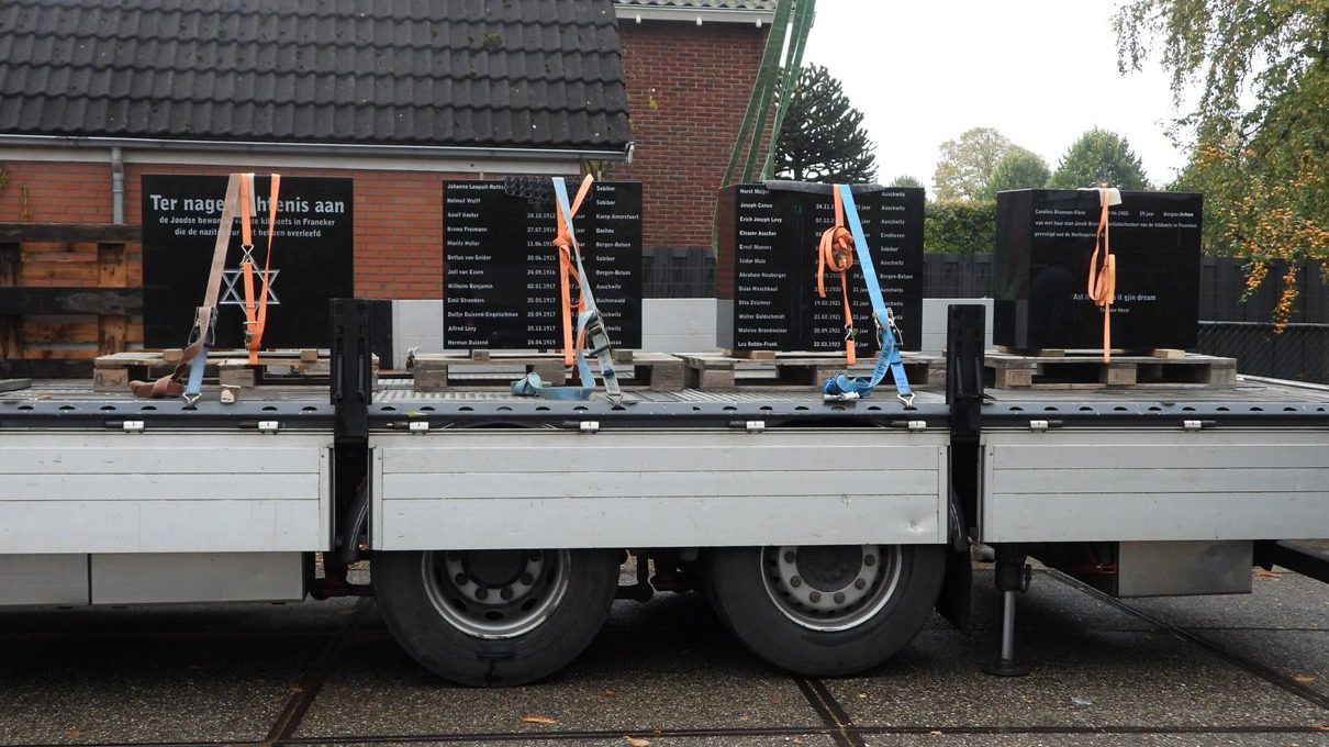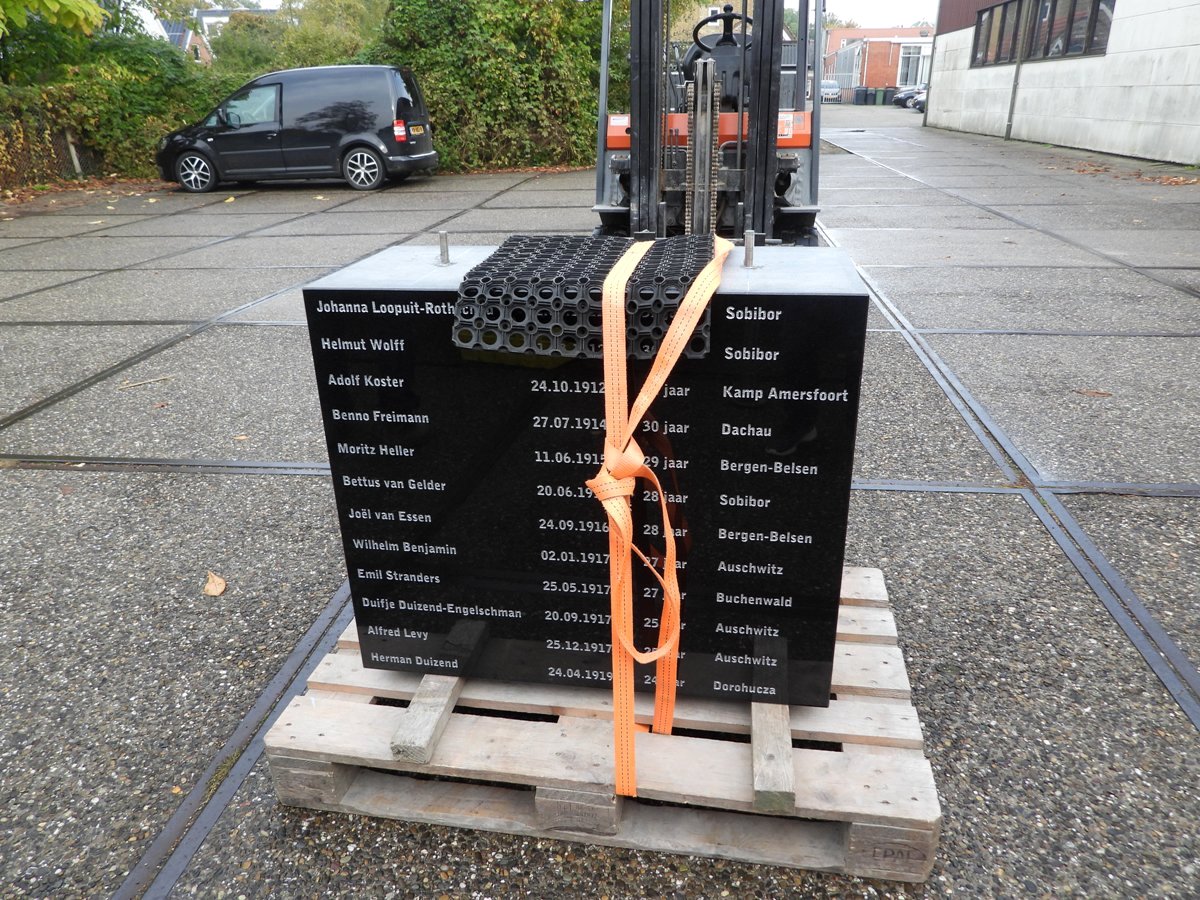 KOLLUM – Vrijdagmorgen ging een nieuw gemaakte Joodse monument van Marcel van Zijp op transport vanuit zijn werkplaats in Kollum.