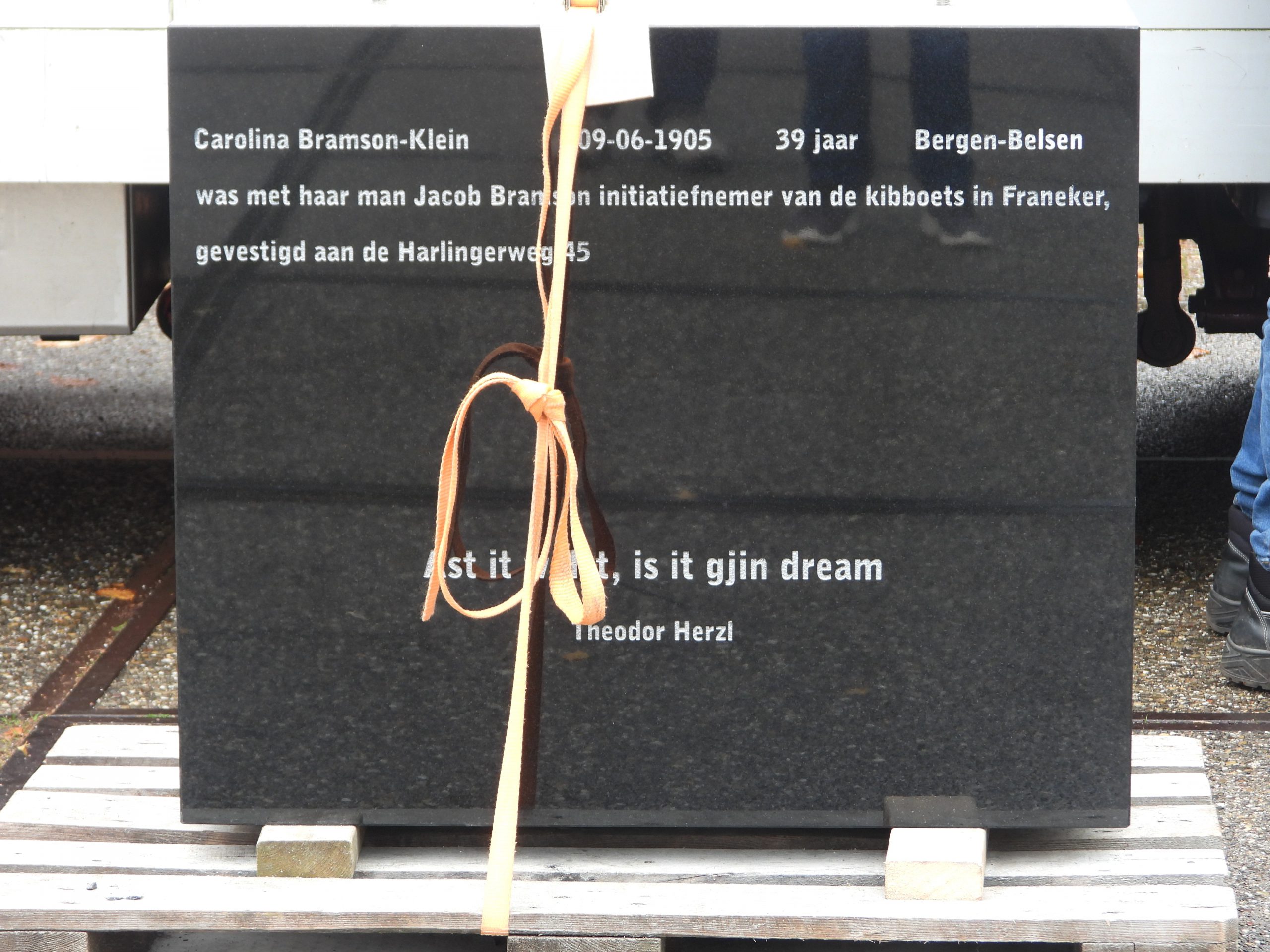 De kibboets in Franeker was een Joodse landbouwschool waar jonge zionisten zich voor bereidden op emigratie naar Palestina. Op donderdag 3 november zal de onthulling van het monument plaatsvinden aan de Harlingerweg in Franeker door Commissaris van de Koning drs. dhr. A.A.M. Brok. Ook zal Auke Zeldenrust zijn boek Kibboets op de klei dan presenteren.