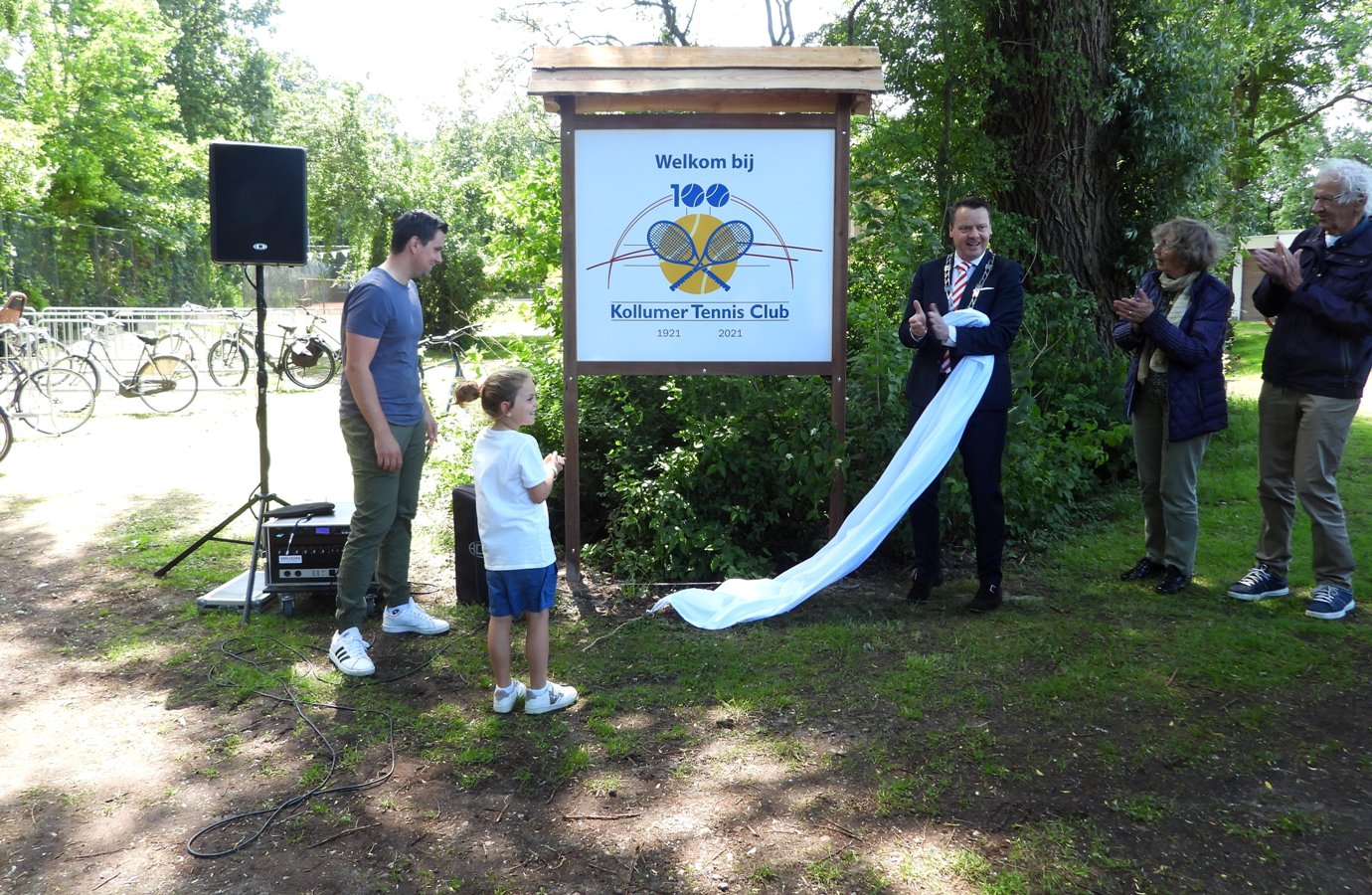 Zaterdagmiddag om 13.00 uur heette voorzitter Dennis Gaasendam iedereen welkom. Burgemeester Johannes Kramer van de gemeente Noardeast-Fryslân was uitgenodigd om het aandenken te onthullen. In de toespraak van de burgemeester werd onder andere aangehaald dat sporten verbindt en verbroedert en dat de KTC niet alleen naar het verleden kijkt, maar ook naar de toekomst met haar plannen voor de zeer populaire racketsport padel. Hierna werd met hulp van Emma Siegersma het nieuwe welkomstbord onthuld. Het nieuwe welkomstbord is gemaakt door voorzitter Dennis Gaasendam zelf, de sticker is gesponsord door Fotocadeau. Na de plechtigheid werd het jubileumtoss toernooi geopend door de voorzitter. Oud en huidige leden gingen met elkaar tennissen in wisselende samenstellingen.