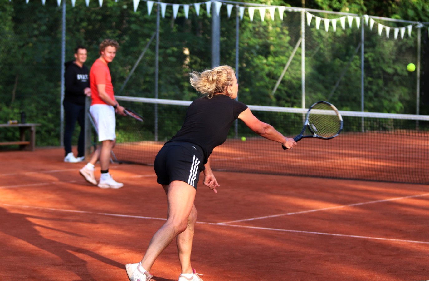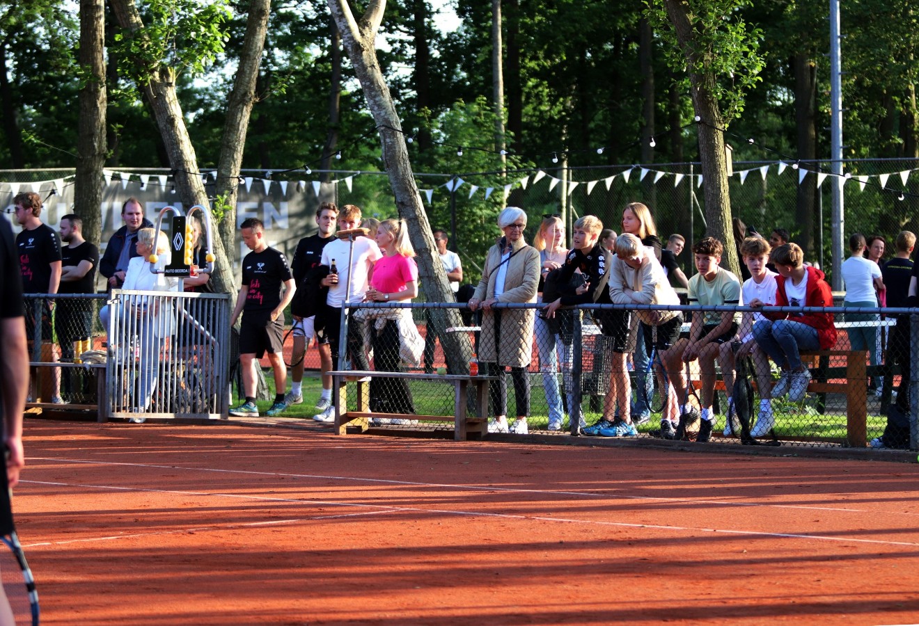 Vrijdagavond werd de viering van het jubileum gestart met een jubileumtennistoernooi voor iedereen. Met maar liefst 30 koppels in de categorieën: “nog nooit getennist”, “weleens getennist” en “speelt regelmatig tennis”, was de belangstelling groot. Er zijn 44 wedstrijden van 15 minuten gespeeld. De spelers waren zeer enthousiast en er waren vele toeschouwers op het tennispark te vinden, dit in combinatie met het prachtige weer, maakte het zeer gezellig.