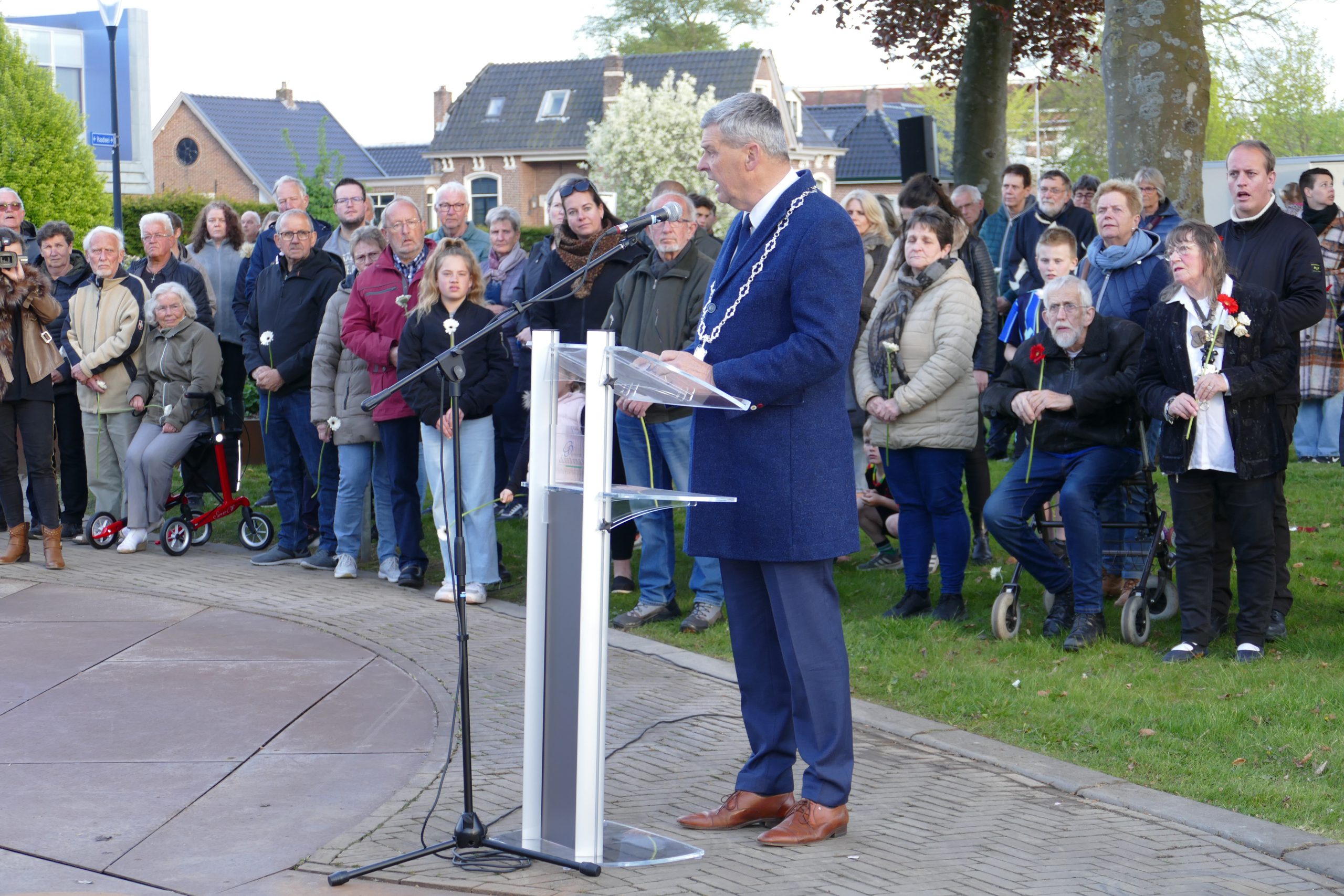 Namens de bevolking en oud militairen van Dantumadiel werd door Johannes Haakma van het 4 en 5 mei comité en Andries Bijlstra, oud militair een krans gelegd. De kransdragers waren Femke Brouwer en Lisa Streekstra, leerlingen van De Wingerd. Drie bloemen werden door Herman Douma en Jacomien Kleefstra, leerlingen van de Wingerd bij het monument gelegd.