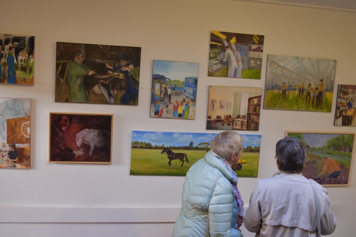 ‘De Wite Kninen’ hebben zaterdag de expositie in oude gymzaal geopend voor publiek De vele belangstellenden konden genieten van verschillende soorten kunst.