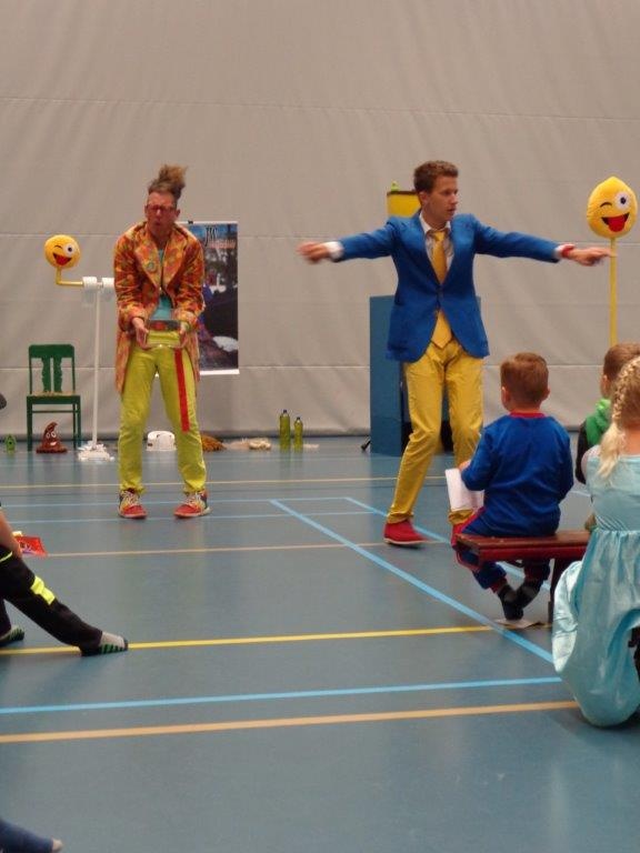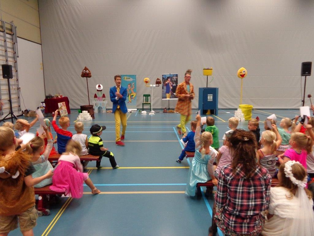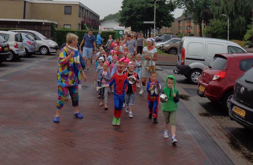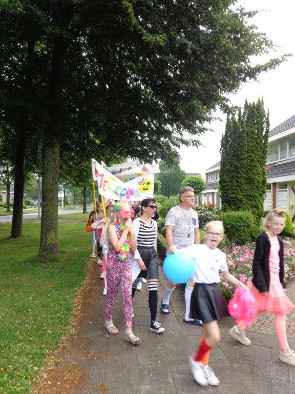 De laatste schooldag van de Koningin Julianaschool werd feestelijk gevierd met o.a. een lawaai optocht, een theatervoorstelling (WC-show) en een speurtocht.
