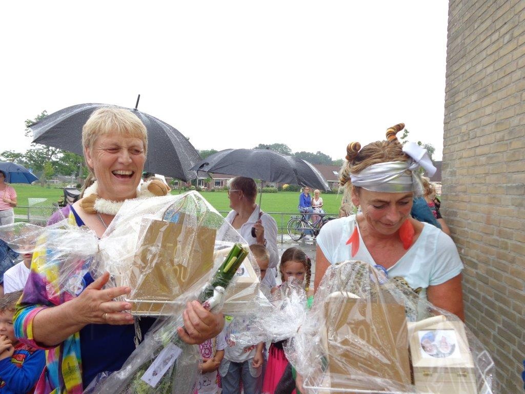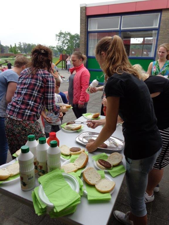 Tussen de middag was er een picknick op het plein. Tenslotte werd er afscheid genomen Juf Lies en juf Anneke. Zij stoppen met werken. Samen hebben zij bijna 25 jaar les gegeven aan de kleuters. Dit hebben ze altijd met veel enthousiasme en plezier gedaan!