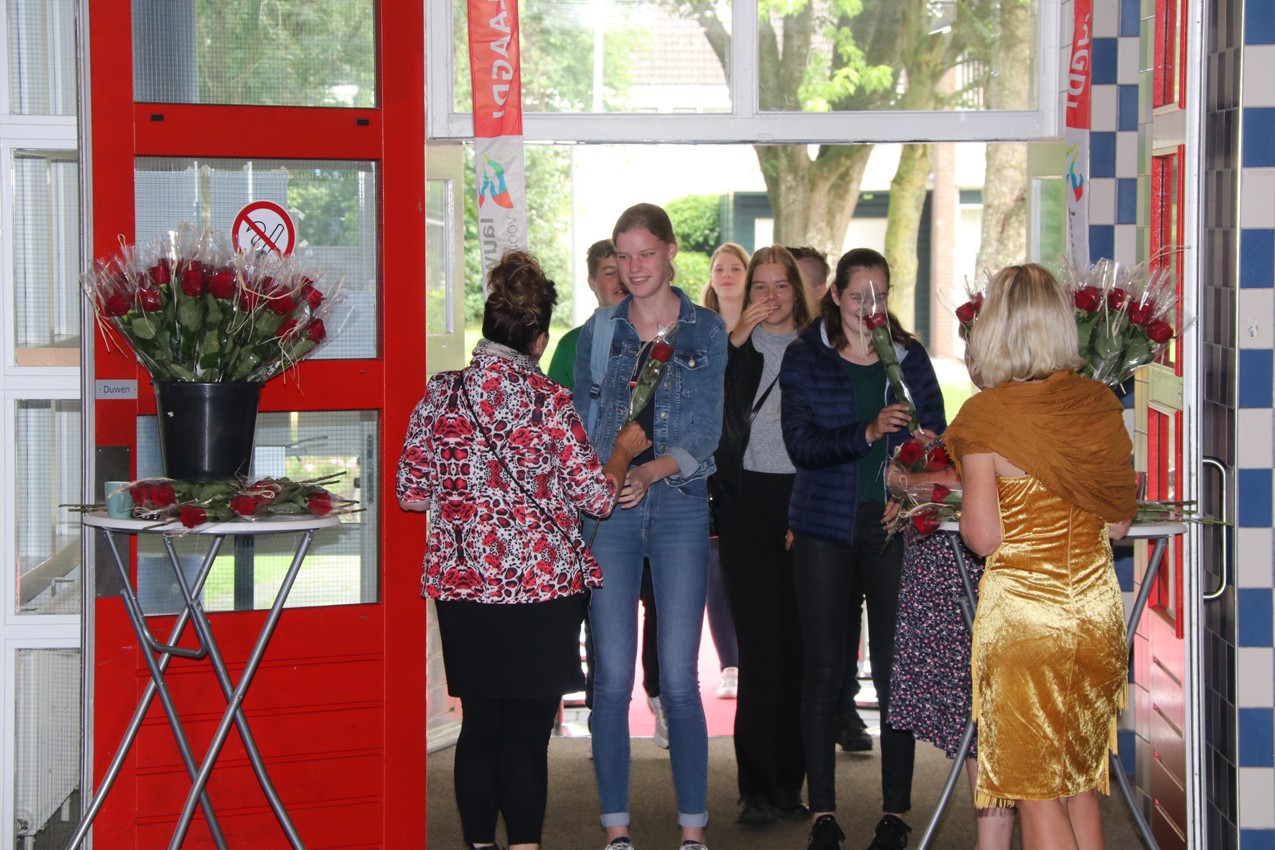 Donderdag namen de leerlingen afscheid van hun klasgenoten en docenten: op school was de rode loper uitgelegd en liepen zij onder begeleiding van muziek door een erehaag van applaudisserende docenten. Er was een samenzijn met de klas en mentor en er werd een laatste groepsfoto gemaakt. Een prachtige afsluiting van een wel zeer bijzonder examenjaar.