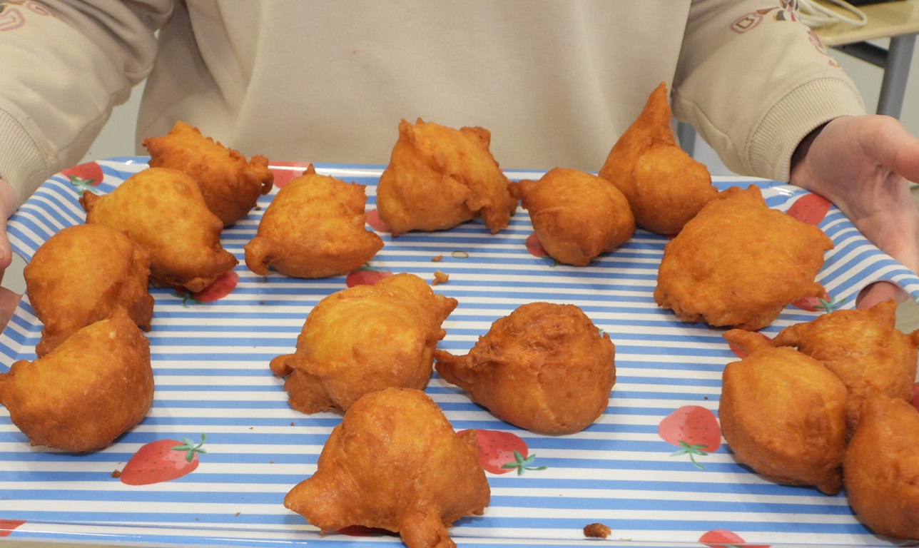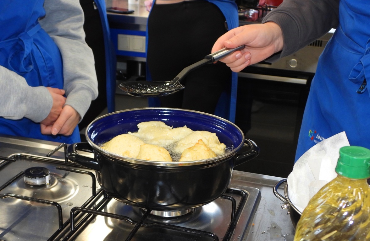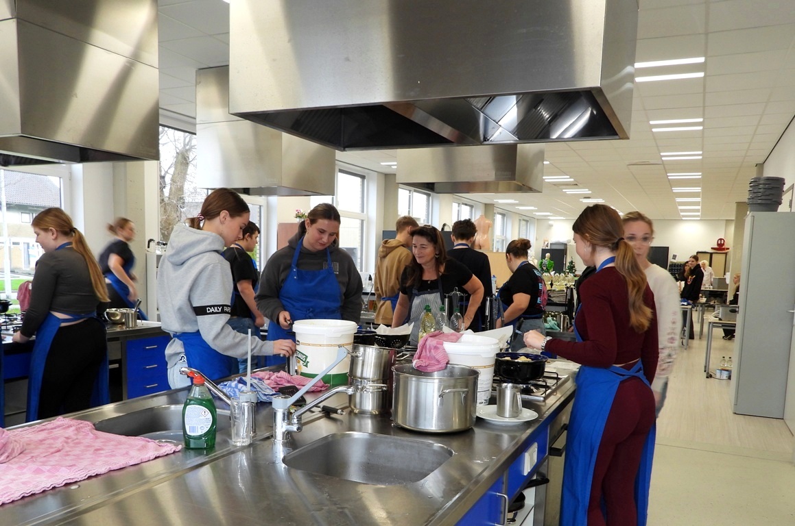 KOLLUM – Klas 4 van Zorg en Welzijn van het Lauwers College Kollum heeft zich woensdag 11 december fantastisch ingezet voor de voedselbank in Kollum door oliebollen te verkopen. ’s Ochtends om 9 uur werd het ambachtelijke beslag bereid met patentbloem, citroensap, eieren, roomboter, melk, bakkersgist, vanillesuiker en een beetje zout. Het maken van het beslag is een precies werkje dat bijdraagt aan de perfecte oliebol, onder leiding van mevrouw Jeltje van Leijen.