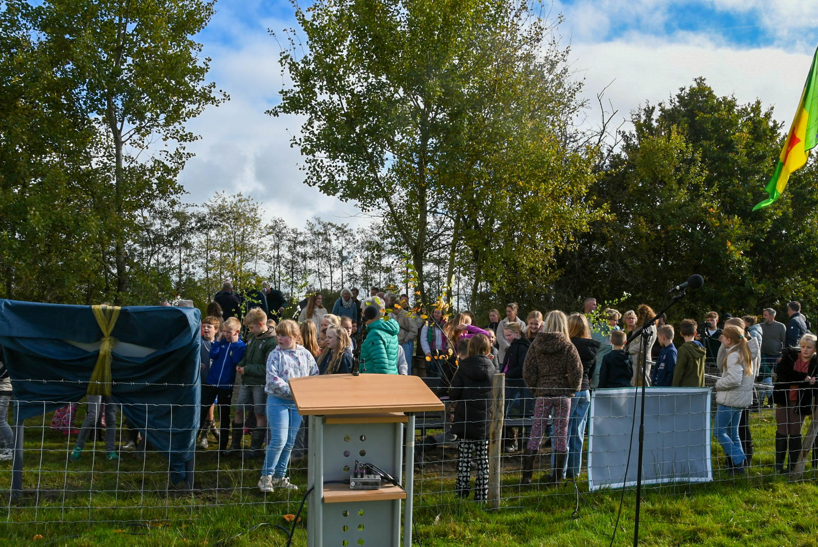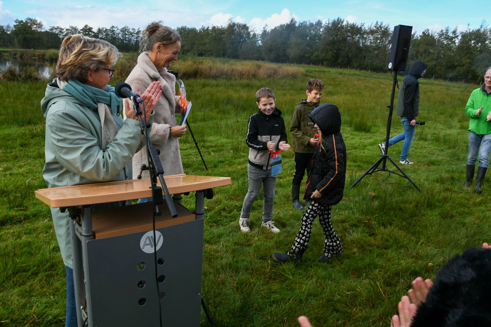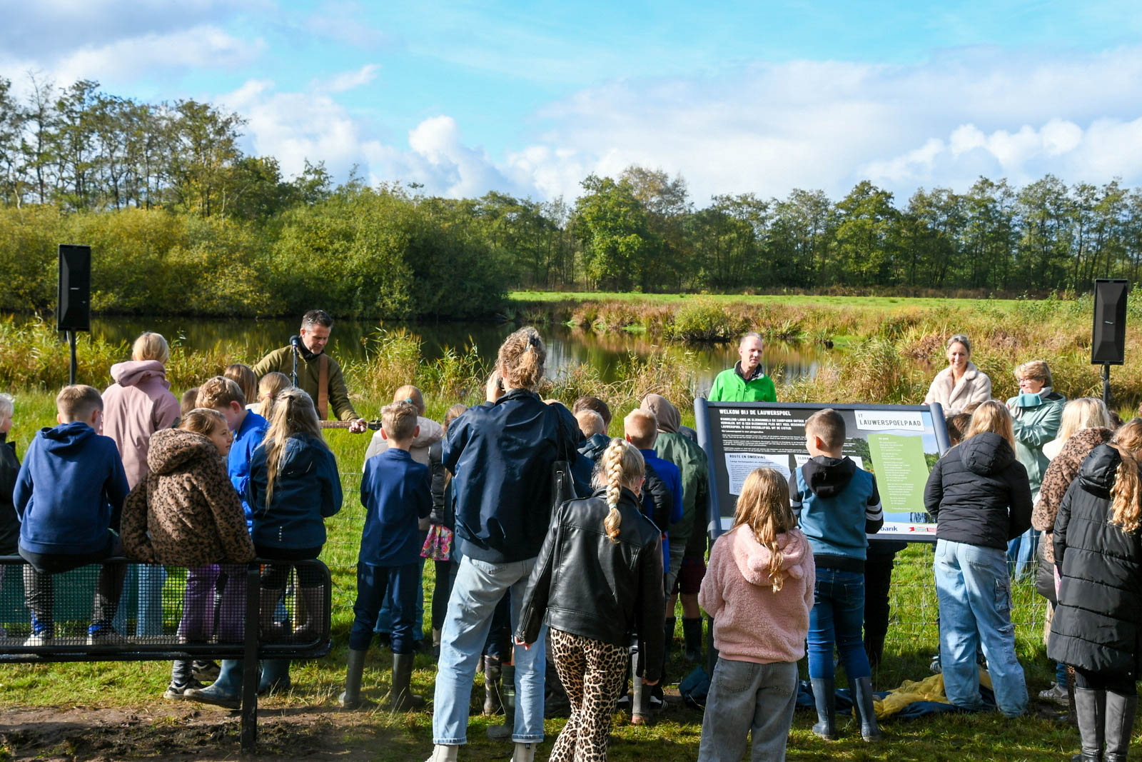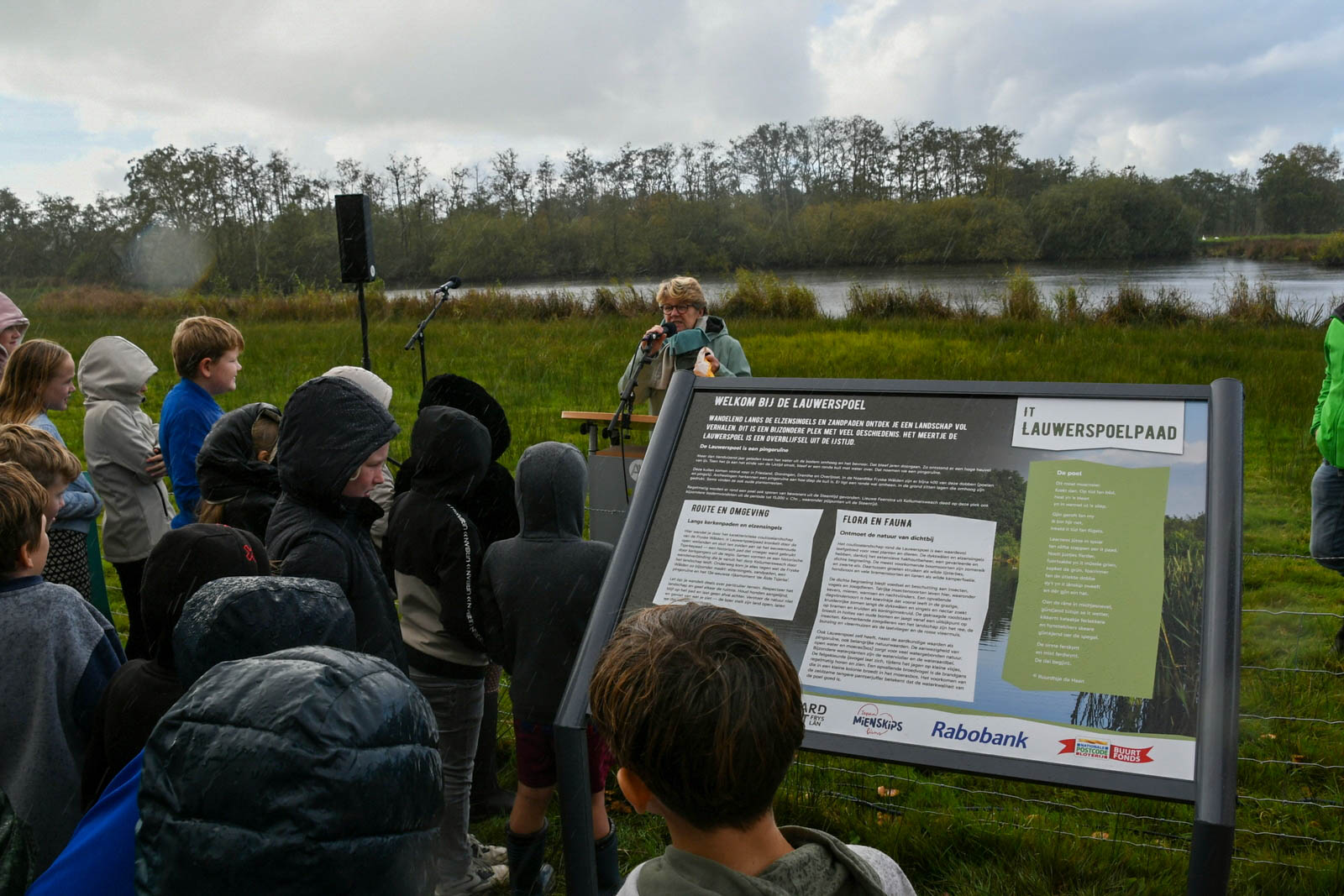 De middag begon rond 13.00 uur met een boomplantactie. Leerlingen van groepen 6 en 7 van CBS De Stapstien plantten in kleine groepjes 20 jonge boompjes en struiken langs de wandelroute. Ze kregen daarbij hulp van vrijwilligers, de wethouder en de kinderburgemeester. Daarna vond de officiële opening van het Lauwerspoelpaad plaats. “Op het informatiebord staat uitleg over het ontstaan van de Lauwerspoel en het natuurgebied. Ook is er een QR-code waarmee de winnende verhalen te lezen zijn,” aldus Douwe Keegstra, voorzitter van Plaatselijk Belang Kollumersweach en Feankleaster.