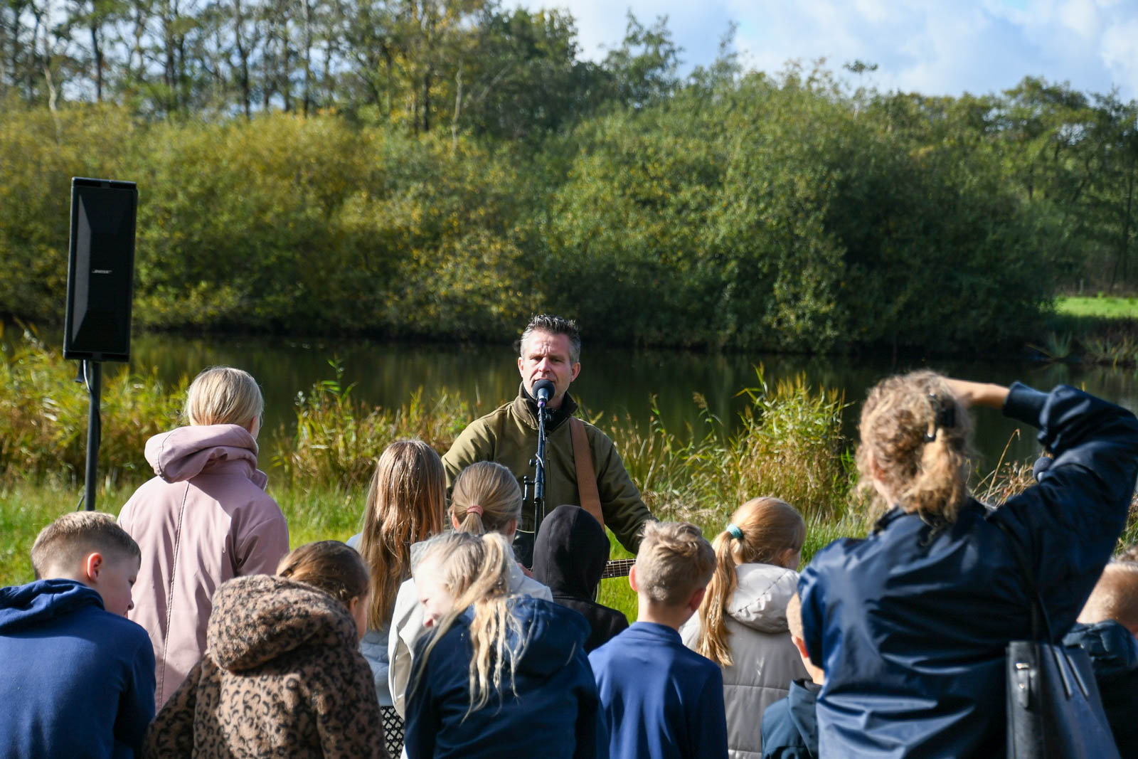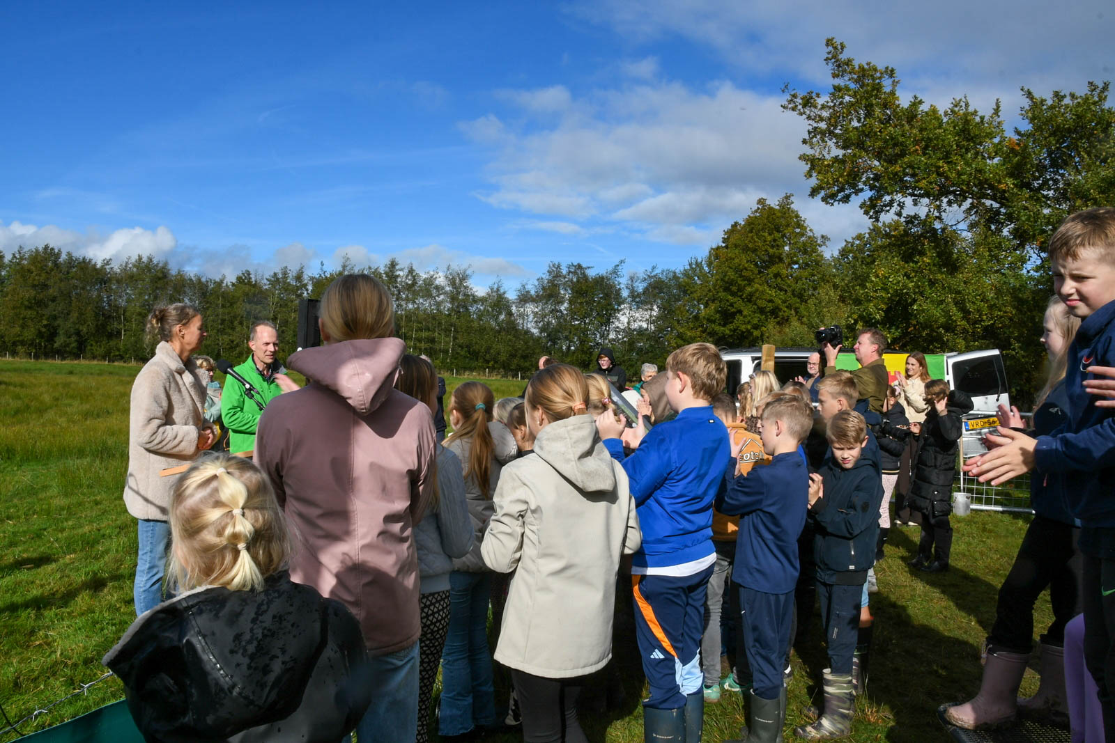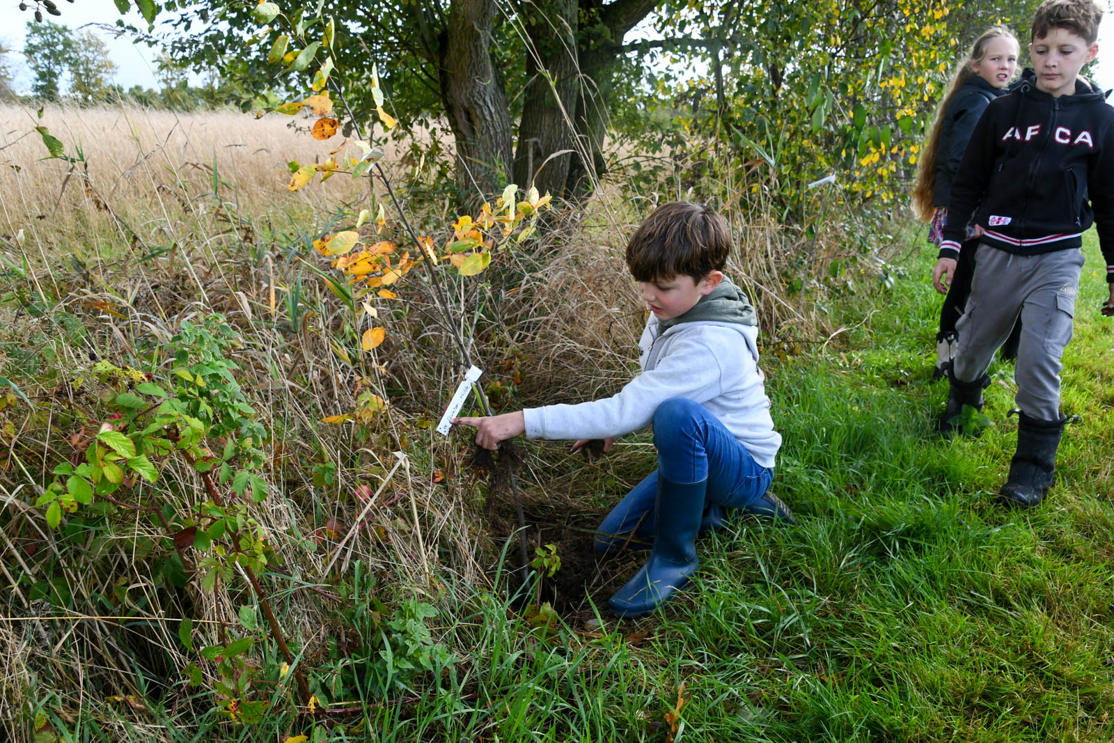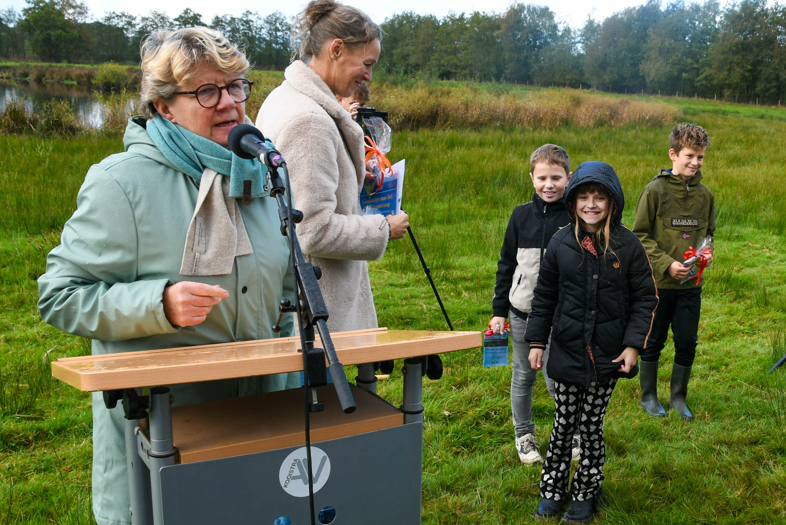 De middag begon rond 13.00 uur met een boomplantactie. Leerlingen van groepen 6 en 7 van CBS De Stapstien plantten in kleine groepjes 20 jonge boompjes en struiken langs de wandelroute. Ze kregen daarbij hulp van vrijwilligers, de wethouder en de kinderburgemeester. Daarna vond de officiële opening van het Lauwerspoelpaad plaats. “Op het informatiebord staat uitleg over het ontstaan van de Lauwerspoel en het natuurgebied. Ook is er een QR-code waarmee de winnende verhalen te lezen zijn,” aldus Douwe Keegstra, voorzitter van Plaatselijk Belang Kollumersweach en Feankleaster.