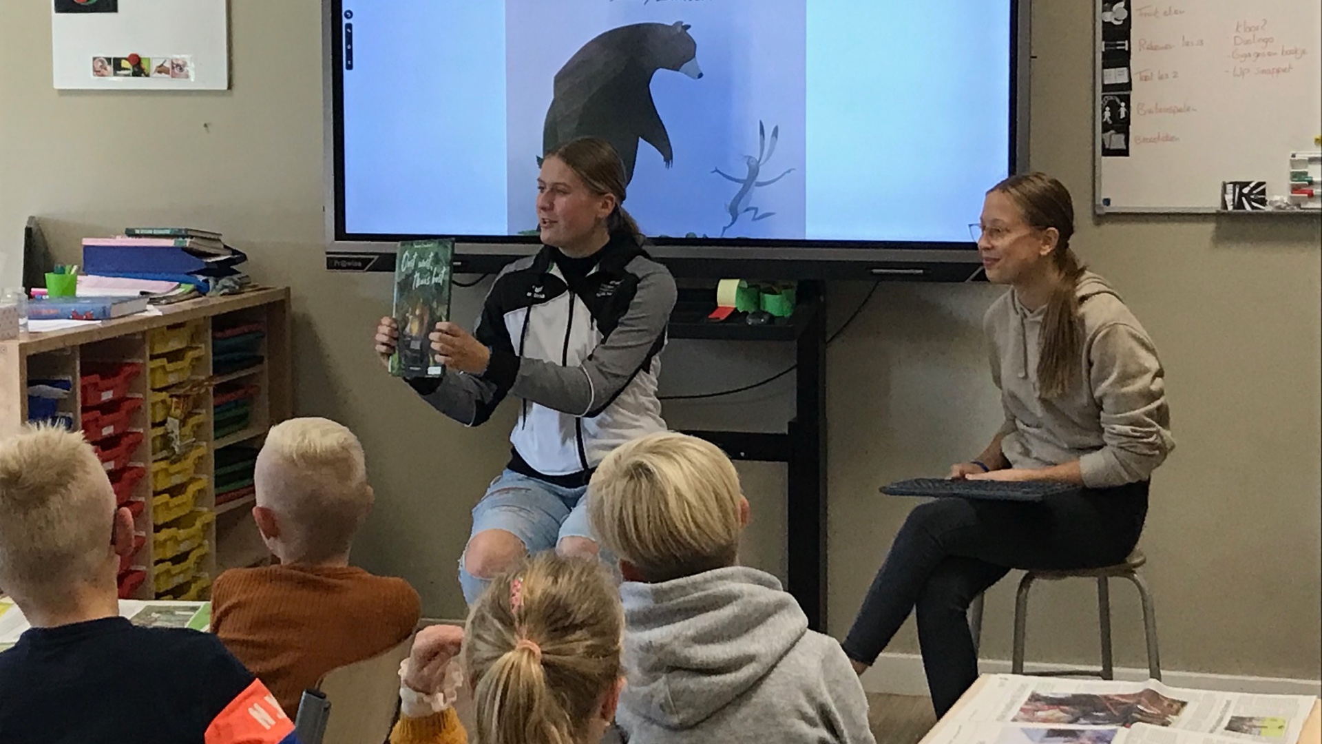 SURHUISTERVEEN – Op woensdag 12 oktober hebben leerlingen uit de vierde klas Dienstverlening & Producten (D&P) VO Surhuisterveen een kinderboek voorgelezen voor de onderbouwgroepen 2 t/m 4 van basisscholen De Hoekstien uit Surhuisterveen en de JLS uit Surhuizum. Na de voorleesactie zijn de kinderen in gesprek gegaan over het boek.