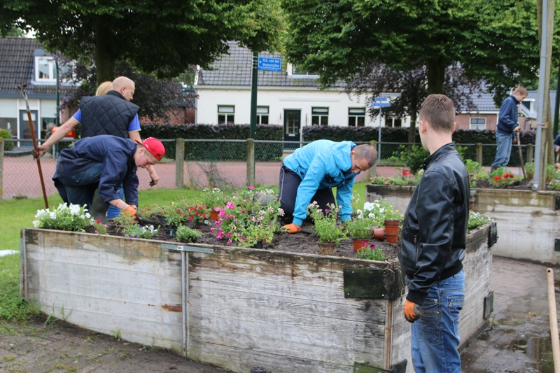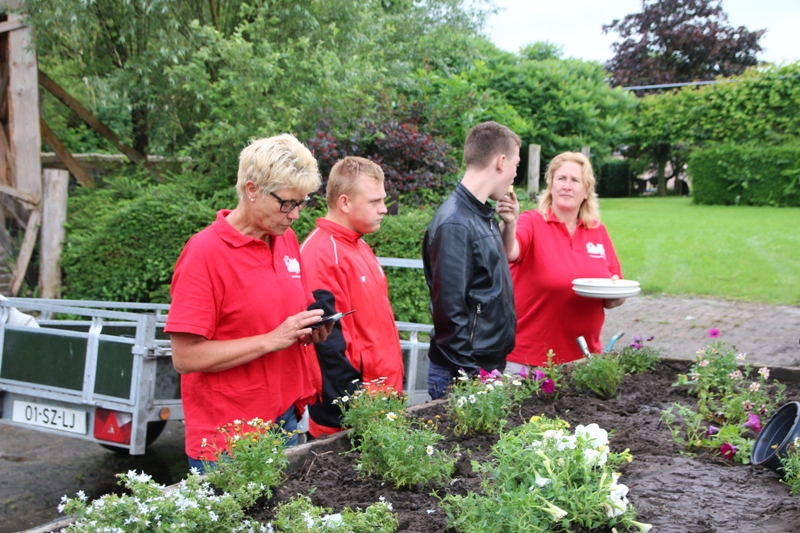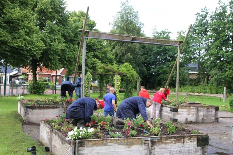 Donderdagmorgen 30 juni hebben leerlingen van vso De Wingerd, uit Damwâld bloembakken bij een hindernis van de paardendagen gevuld met planten. Een kar vol bloemen geleverd door Appel uit Damwâld moesten allemaal een plekje krijgen.