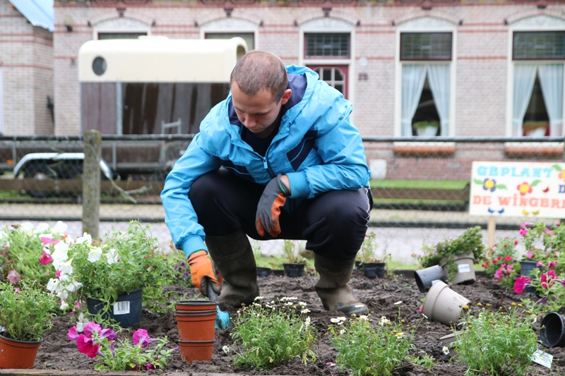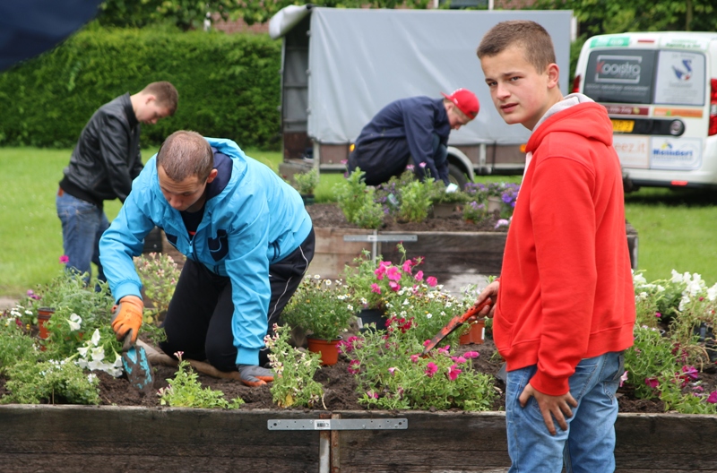 Leerlingen van vso De Wingerd vullen bloembakken