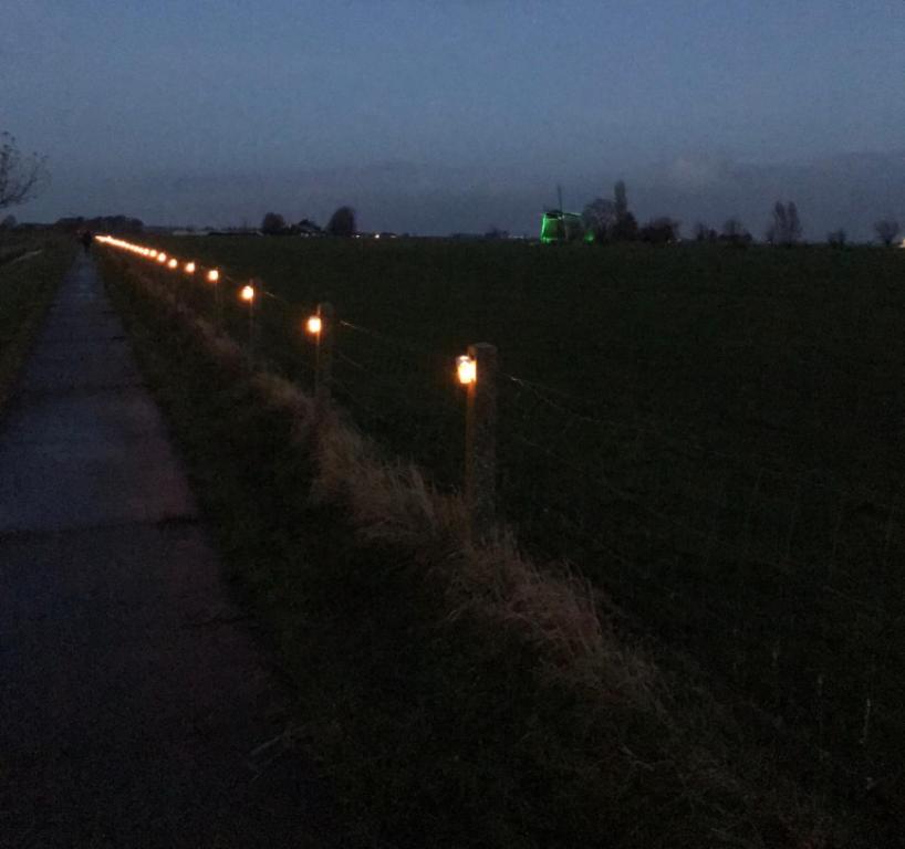 KOLLUMERPOMP – Afgelopen week heeft een groepje vrijwilligers van Dorpshuis Trefpunt in Kollumerpomp de wandelpaden ten noordoosten van het dorp voorzien van sfeervolle verlichting.