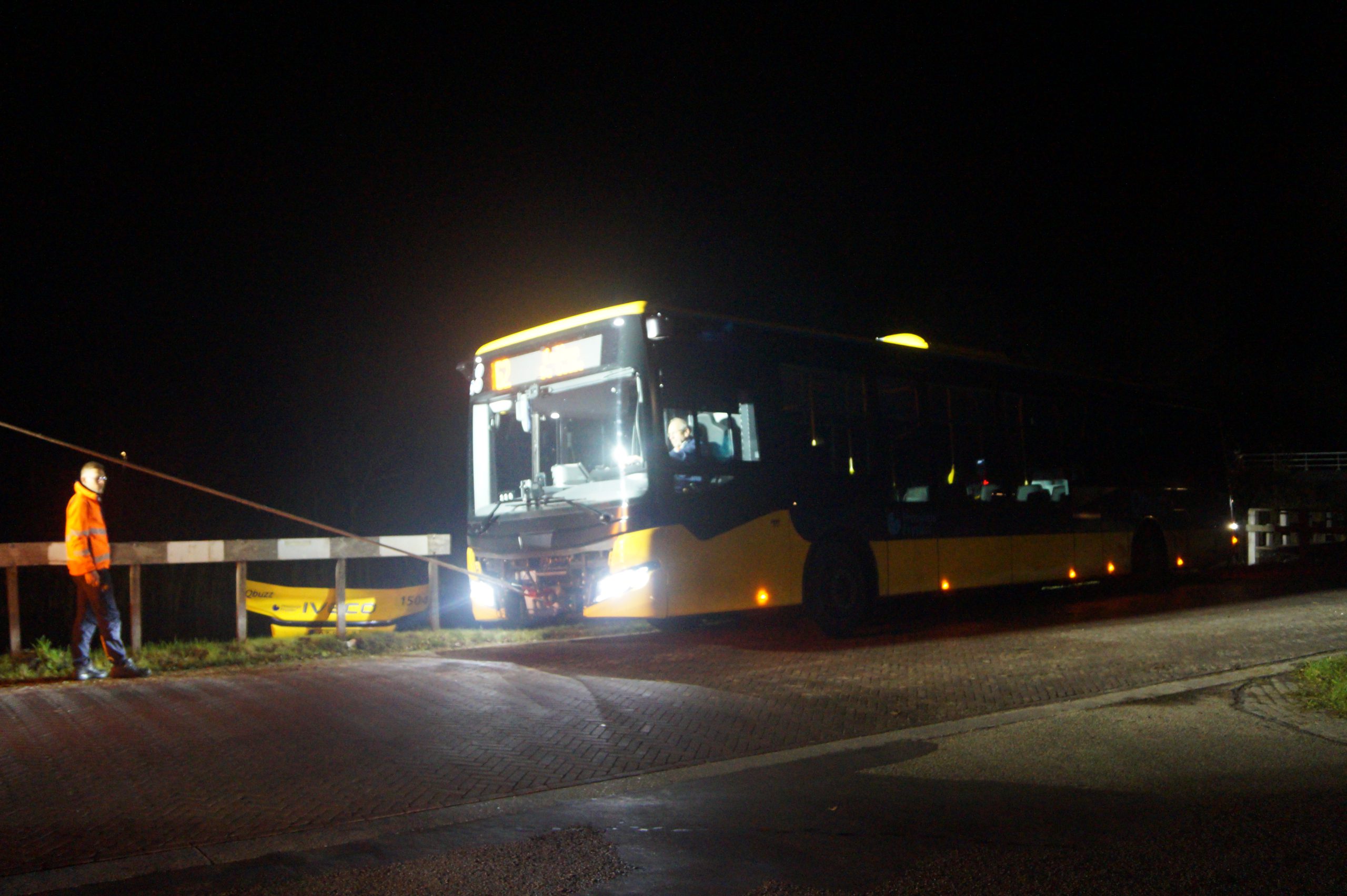 De bus reed op lijn 62 en raakte rond 16.30 uur van de weg. De passagiers zijn veilig overgestapt op een andere bus en konden hun reis vervolgen. Niemand raakte gewond. In de loop van de avond wordt een takelbedrijf uit Staphorst verwacht om de bus los te trekken. Tot die tijd blijft de bus op de plek staan.