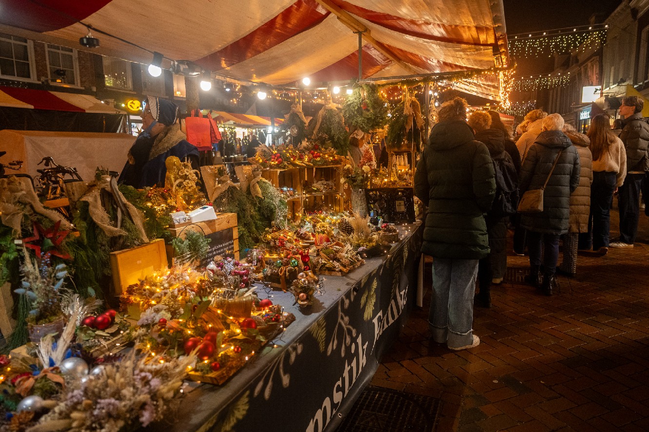 Bezoekers slenterden langs tientallen kramen die gevuld waren met kerstdecoraties, winterse lekkernijen en woonaccessoires. Muziek van koperblazers en kerstkoren vulde de lucht, en overal in de stad waren straattheateracts te bewonderen.