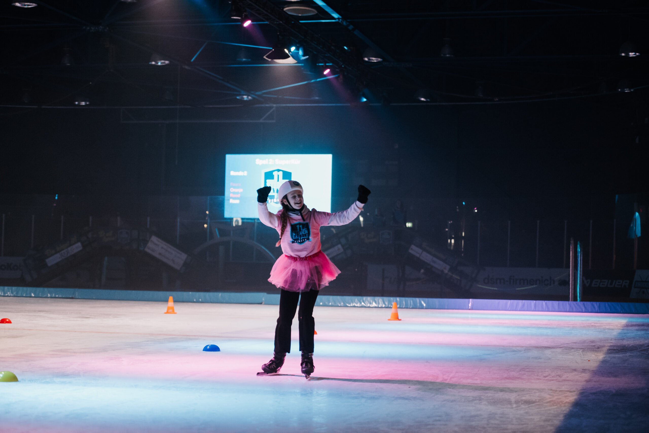 Na het startschot schoten de leerlingen van acht scholen over het ijs voor vier verschillende battles: shorttrack, kunstschaatsen, ijshockey en langebaanschaatsen. Tussen de schaatsonderdelen door testten de deelnemers hun kennis in een quiz over de verschillende disciplines. Van begin tot eind was het een spannende strijd!
