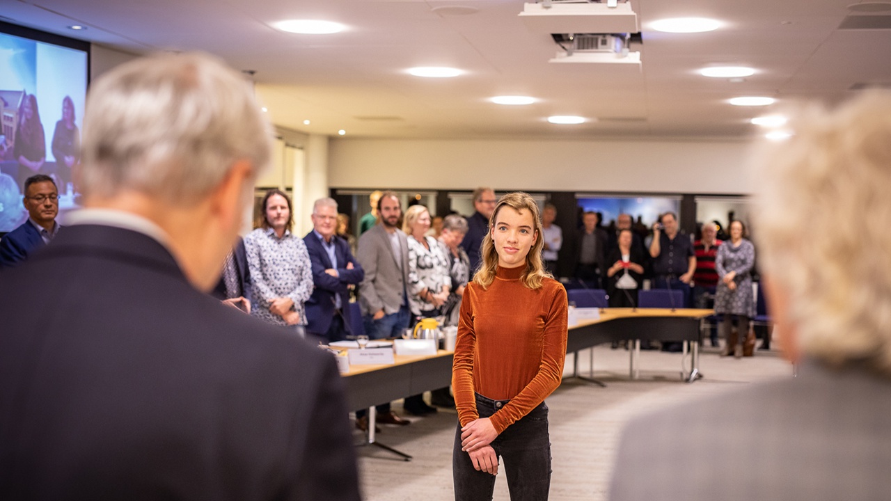 Dinsdagavond 15 oktober is Merel Fiets (14) uit Leeuwarden tijdens de vergadering van het algemeen bestuur geïnstalleerd als jeugddijkgraaf van Wetterskip Fryslân