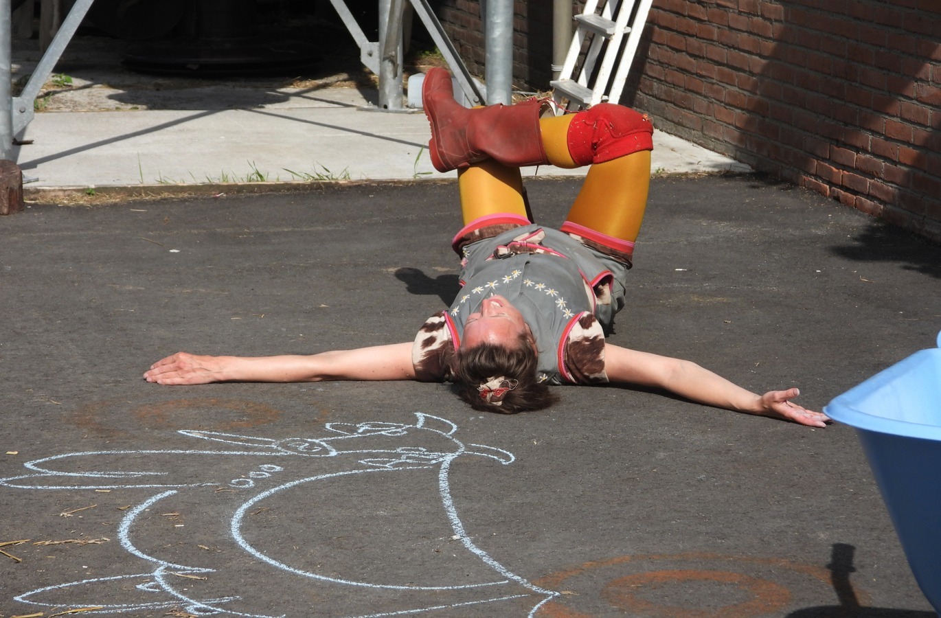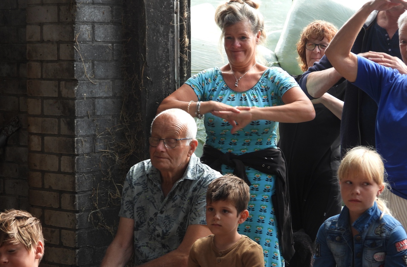“Taury vindt koeien zó mooi. Haar naam betekent ‘koe’ in het Latijn en dat vindt ze heel speciaal. Zo speciaal dat Taury besloten heeft dat ze later, als ze groot is, koe wil worden. Maar als je koe wilt worden, wat moet je dan kunnen? Een koe geeft melk zegt de boer. Maar hoe doet de koe dat dan? Taury heeft wel duizend vragen over koeien. Wat eet een koe? Poept een koe ook? Wat kun je allemaal met melk? Al dansend neemt Taury de kleuters mee het boerenerf over. Samen gaan ze door te proeven, voelen, ruiken en doen op zoek naar de antwoorden op Taury´s vragen.” Door het prachtige weer was het een groot succes. De vrijwilligers die hier aan mee werkten kregen na afloop een presentie aan geboden.
