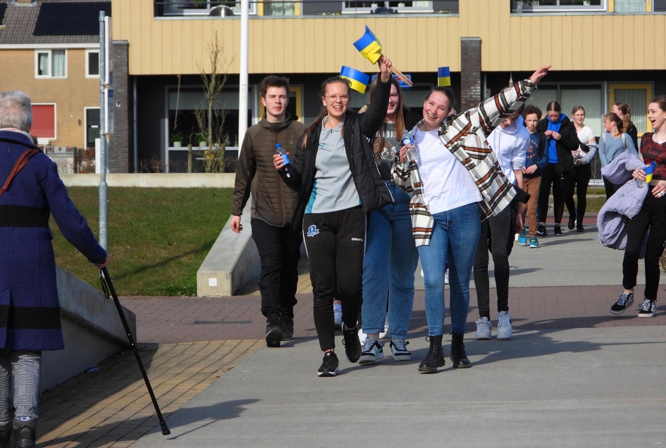 KOLLUM – Leerlingen en teamleden van Campus Kollum zijn vanaf vorige week volop in actie gekomen voor Oekraïne. Zo zamelden ze al zakken vol statiegeldflessen in voor Giro 555. Woensdagmiddag organiseerde Piter Jelles !mpulse Kollum een sponsorloop. Leerlingen en teamleden zamelen ook op die manier geld in voor Oekraïne door samen door Kollum te wandelen, te joggen of te sprinten.