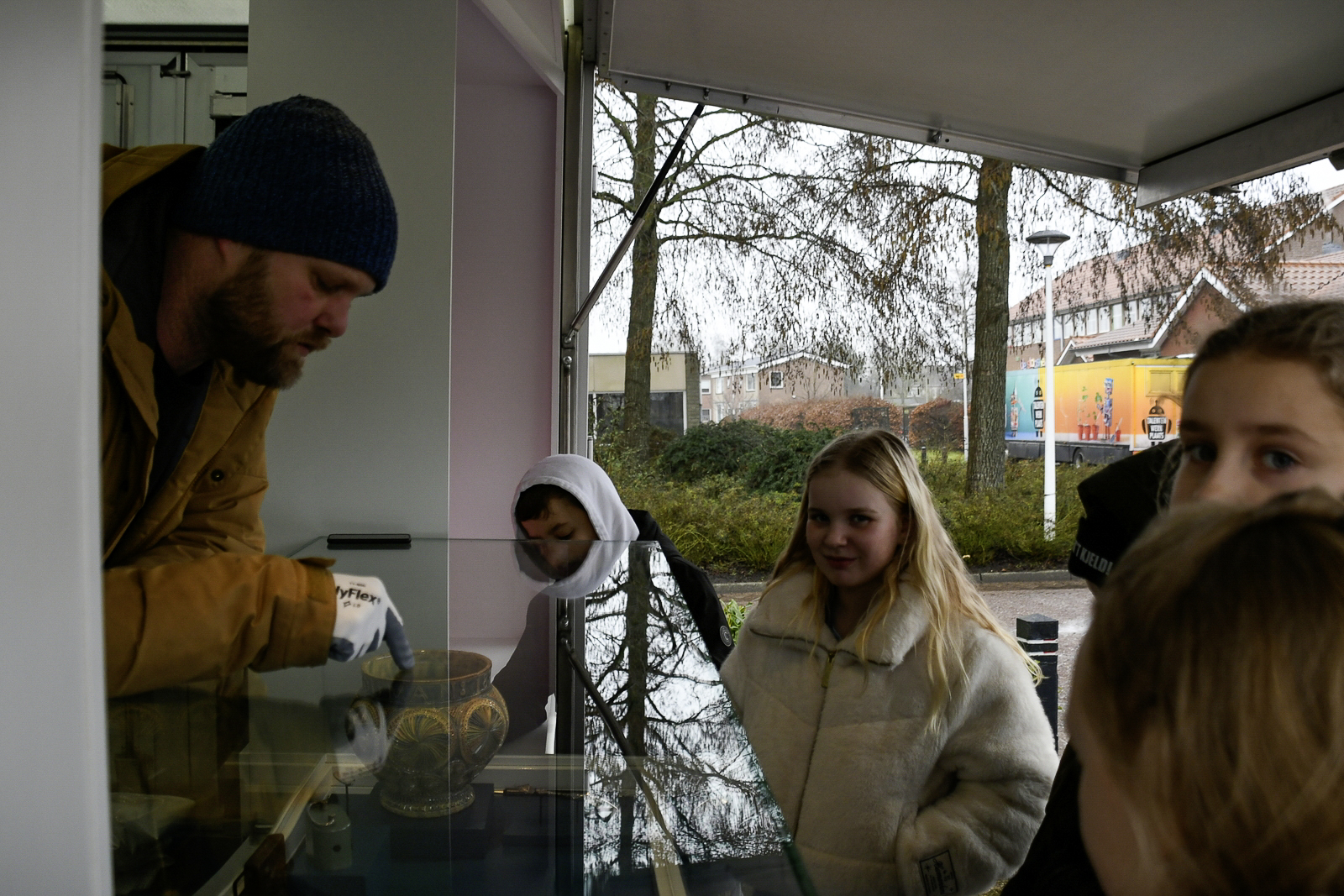 In de bus geeft een collectiemedewerker uitleg over de verzamelstukken. Ook vertelt hij hoe de stukken zijn gevonden en op welke manier ze uiteindelijk in het Fries Museum terechtkomen. De kinderen krijgen daarbij volop de ruimte om vragen te stellen.