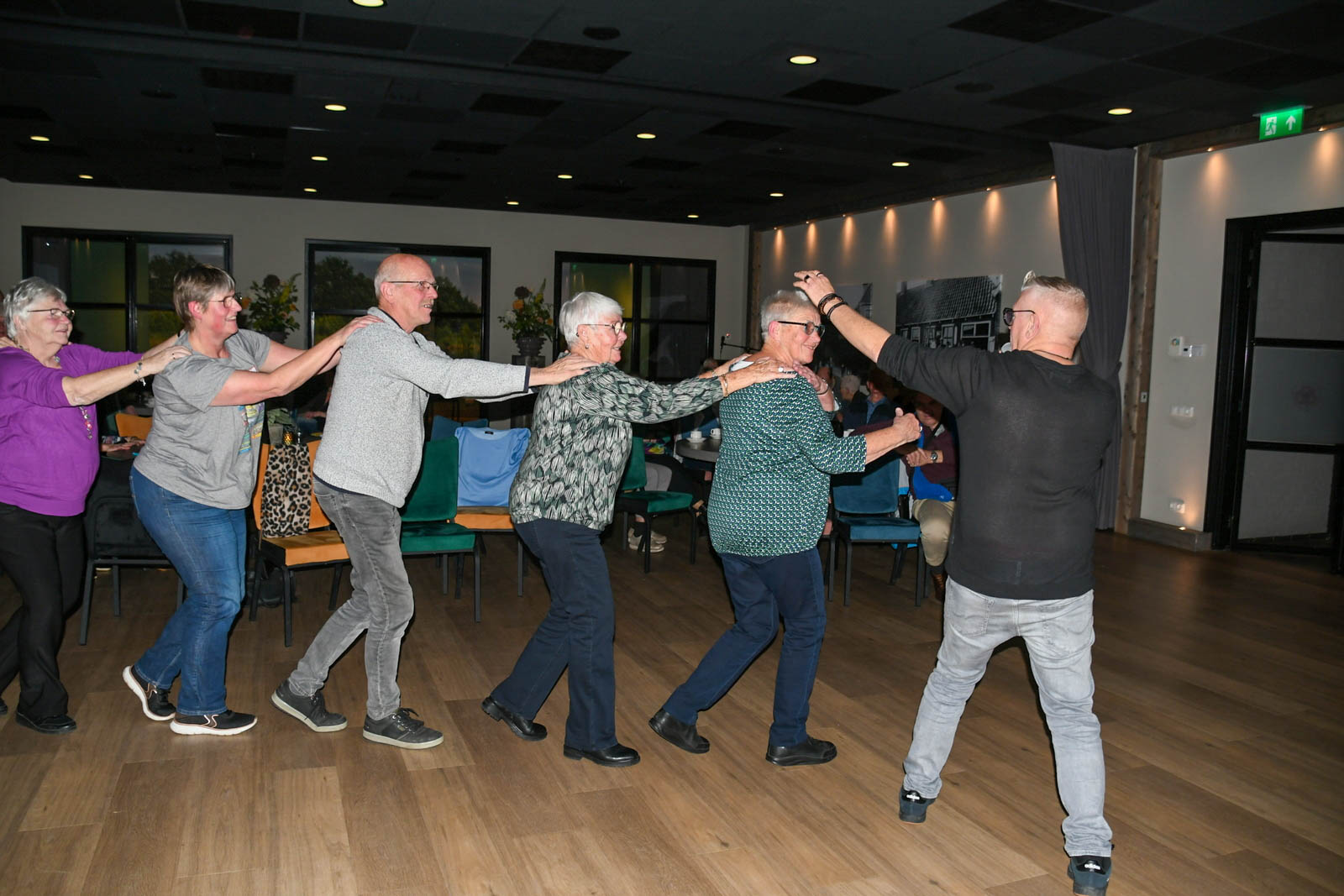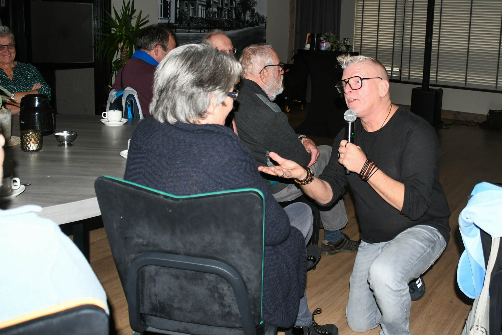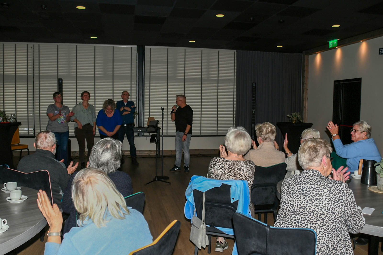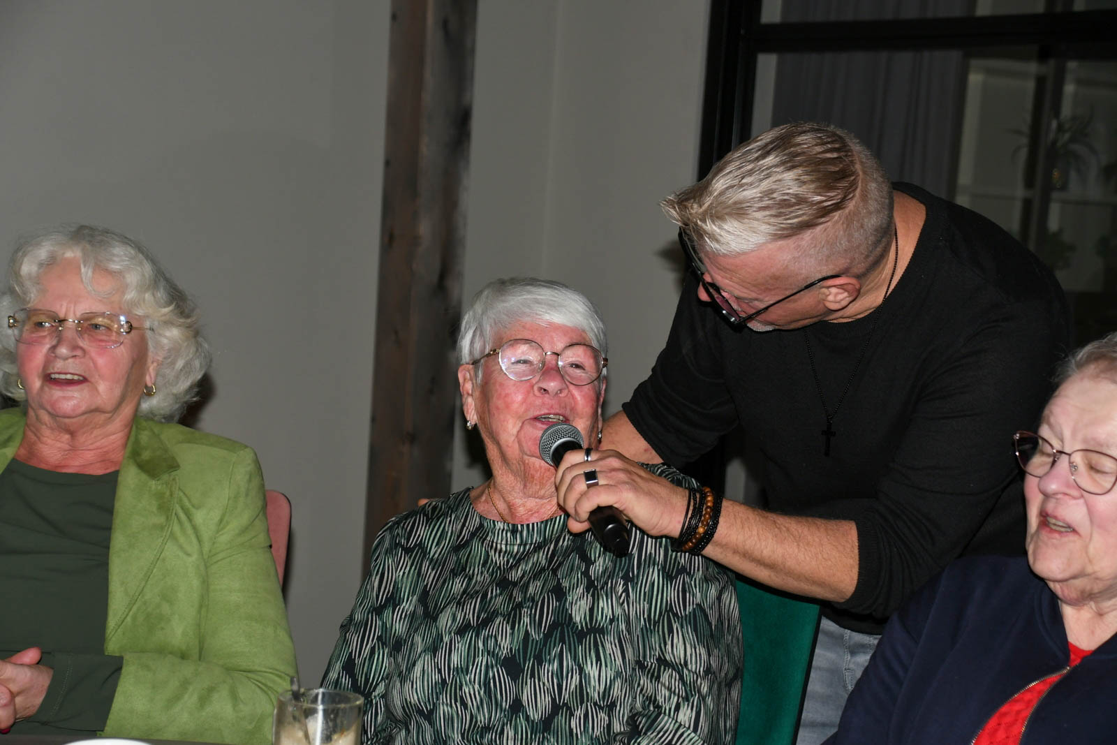 Gelukkig werd zanger Krijn bereid gevonden om in te springen. En wat een fantastisch meezing-en-swingfeest heeft hij er van gemaakt! Van “Que Sera” , naar “Mama” tot ” Engelbewaarder” alle meezingers kwamen aan bod. De sfeer zat er goed in en zelfs de haak-maar-in-liedjes, de stoel-rock-en-roll én de polonaise werden niet geschuwd. Het was een zeer gezellige middag met onverwachte meezingtalenten in het publiek. Het publiek was enthousiast en zien graag Krijn nog eens terugkomen. Nadien was er voor de liefhebbers nog de mogelijkheid om een patatje te nuttigen, ook altijd een gezellig samenzijn.