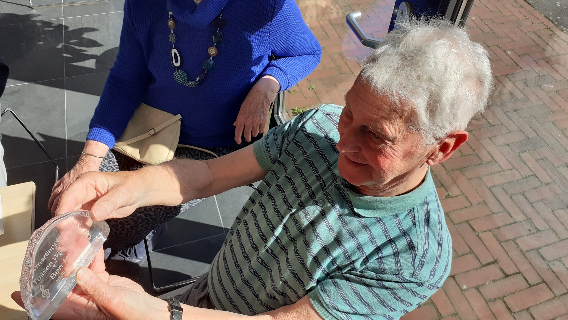Voor zijn jarenlange inzet bij het Smartlappenkoor werd Ben gehuldigd en verraste en ontroerde het bestuur hem met een schitterend aandenken en bloemen voor zijn vrouw Margreet. Voor alle koorleden betekenden de waarderende woorden van de voorzitter een mooi en toch ook wel emotioneel moment om samen te beleven.