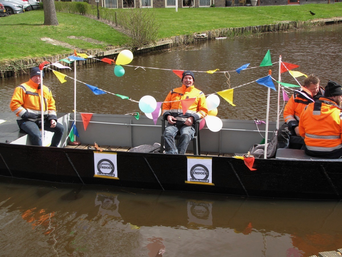 Na een reorganisatie werd Johannes te werk gesteld in Dokum voor onderhoud van gebouwen en voor al sporthallen in de gemeente Noardeast-Fryslân voor de laatste 5 jaar. Johannes woont in Kollum met zijn vrouw Antsje. Deze keer hadden zijn collega’s bedacht om hen niet met de auto naar huis te brengen maar met een versierde boot thuis te brengen via de stroobossertrekvaart.
