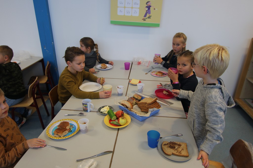 De kinderen kregen deze ochtend een ontbijt aangeboden door het Nationaal Schoolontbijt. Je dag beginnen met een goed ontbijt geeft je letterlijk en figuurlijk energie: zowel in voedingskundig opzicht als in sociaal opzicht (gezellig samenzijn). Het was een zeer geslaagd schoolontbijt.