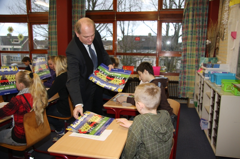 dhr. Gerrit de Boer, hoofd van de afdeling sport bij Omrop Fryslan was te gast bij groep 1 dhr. Marius Dussel, regioverslaggever Leeuwarder Courant kwam in groep 2 voorlezen dhr. Michel. Breuer, aanvoerder SC Heerenveen was de grote held voor de groepen 3 en 4 dhr. Piet Venema, schaatstrainer en ijsmeester van de Elfstedentocht vertelde boeiend voor groep 5 en vergezelde dit met beelden op het digitale schoolbord mw. Geartsje Leistra, sportvrouw en voormalig lid van de jeugdkernploeg schaatsen en moeder van Doutzen Kroes was een boeiende voorleesgast in groep 6 dhr. Jeen van den Berg, Elf-stedentochtwinnaar en schaatsicoon was nog even fanatiek in zijn verhalen als altijd en was een heel bijzondere gast voor de leerlingen van groep 7 dhr. Alex Pama, algemeen directeur van SC Cambuur was met een mooi verhaal de held in groep 8 en omdat er nog wat tijd over was, maakte hij ook nog de leerlingen van groep 5 ontzettend blij met zijn bezoek