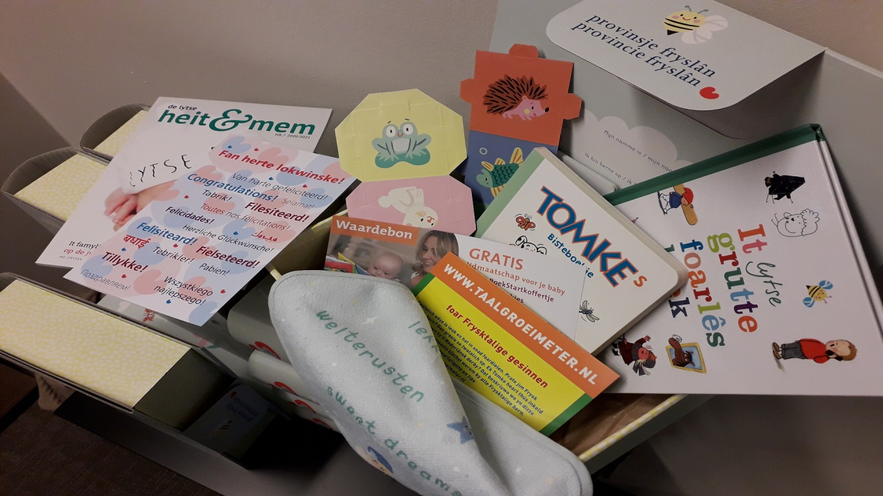Vanaf deze week krijgen ouders een nieuw vrolijk Taalkado van de provincie Fryslân als zij geboorteaangifte doen bij een deelnemende Friese gemeente.