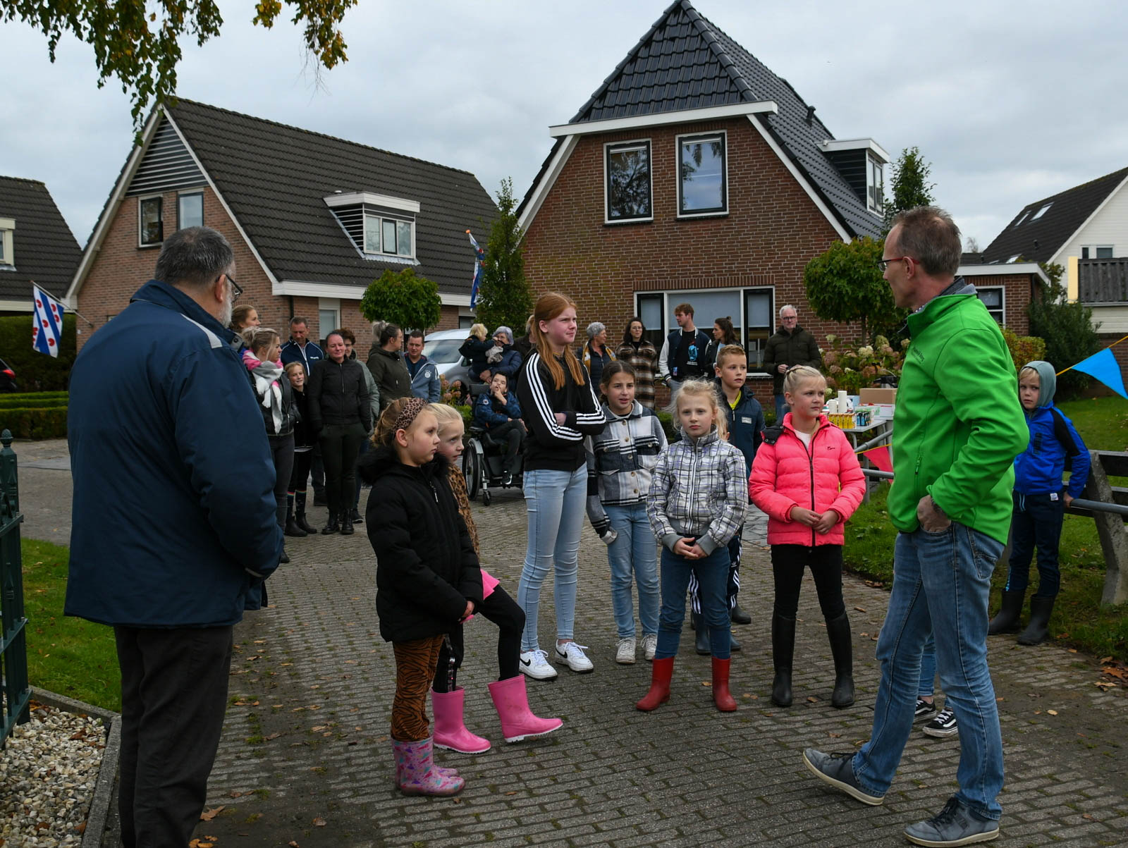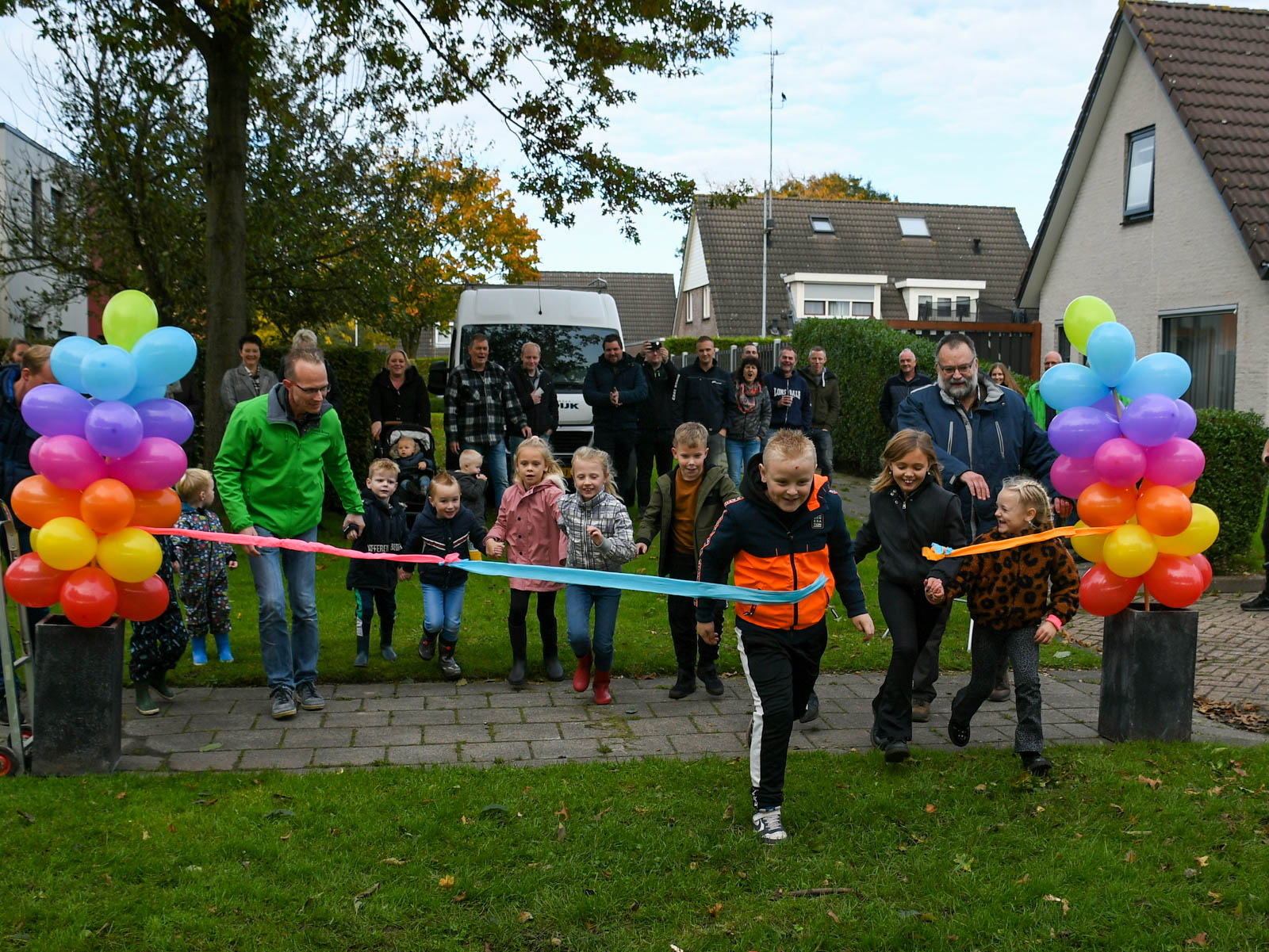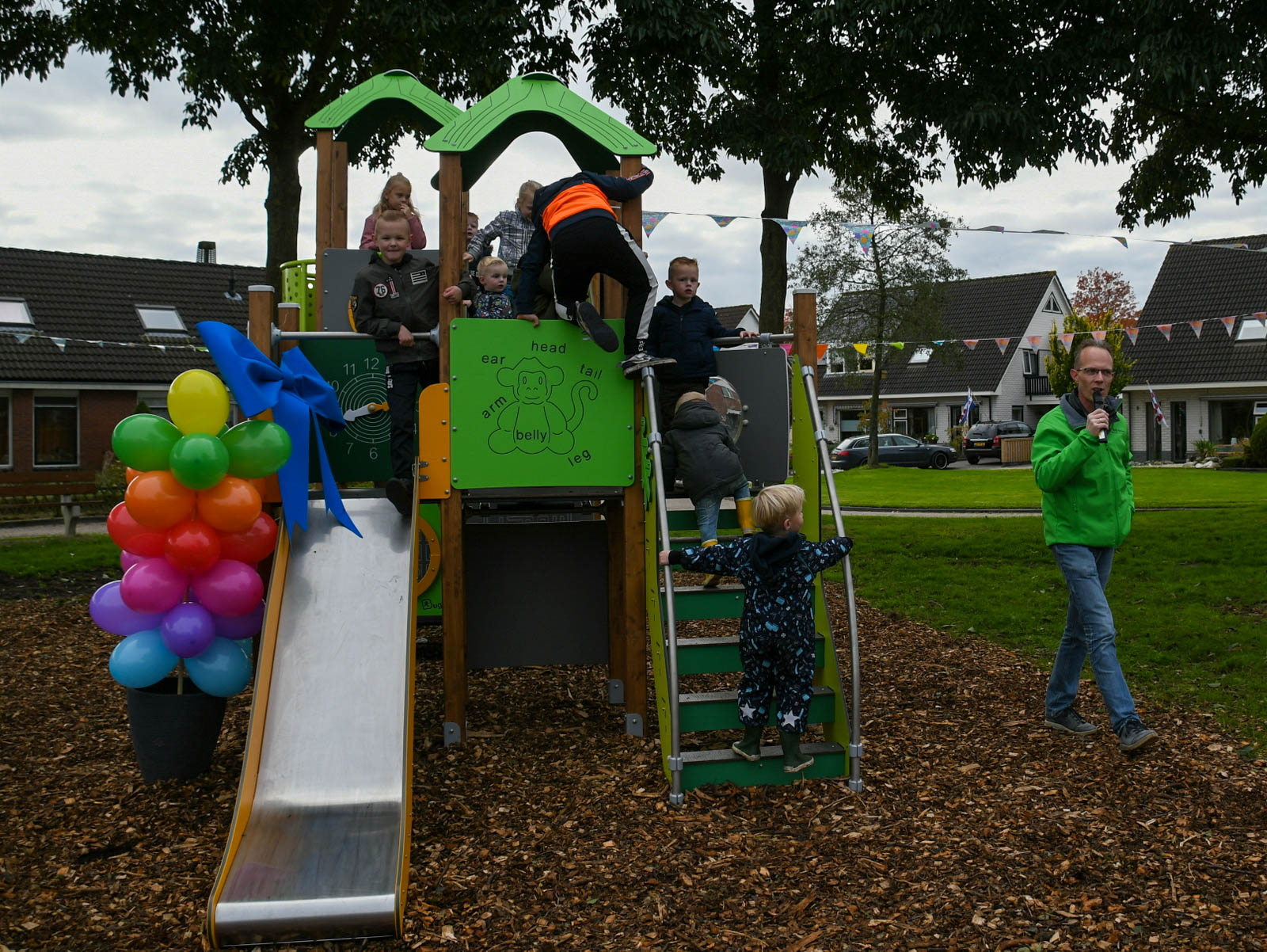Voordat wethouder Fedde Breeuwsma de opening kon verrichten vertelde Geert Postma, contactpersoon van de speeltuincommissie, wat er allemaal aan voorafgegaan is. Wethouder Breeuwsma feliciteerde de kinderen met hun nieuw ingerichte speeltuin. Ook bedankte hij de vrijwilligers, die hier heel veel tijd in hebben gestoken. “Hjir binne we tige wiis mei”, aldus de wethouder. Daarna was het officiële openingsmoment. Bij het terrein bij de J. Vogelzangstrjitte stonden de kinderen en de wethouder en de voorzitter van Plaatselijk Belang hand in hand achter het lint. Er werd afgeteld en toen liepen ze met zijn allen door het lint en snelden de kinderen naar de speeltuin toe. De voorzitter van Plaatselijk Belang, Douwe Keegstra, sprak daarna de kinderen en de vrijwilligers nog toe. Na afloop was er voor iedereen een hapje en een drankje en een lekkere suikerspin voor de liefhebbers.