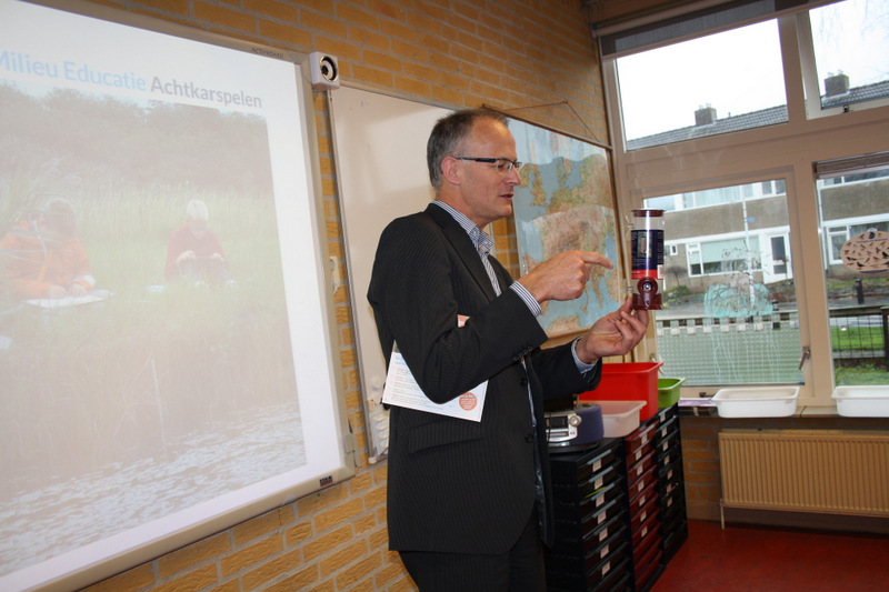Op OBS Maskelyn in Augustinusga werd donderdag de vernieuwde website www.nme-achtkarspelen.nl gepresenteerd door wethouder Klaas Antuma en NME-coördinator Ragna van Sonsbeek. Meester Lammert Kamstra doet met zijn klas regelmatig mee met NME-activiteiten en heeft zijn klas ter beschikking gesteld. Ook hebben alle onderwijsinstellingen in de gemeente de afgelopen week een ‘Vogels in de winterpakket’ ontvangen om actief aan de slag te gaan met NME!