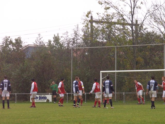De omstandigheden waren niet om naar huis te schrijven regen, regen en nog eens regen. Toch lag er een goed bespeelbaar veld en kon de wedstrijd doorgaan Nieuweschoot had vorige week een inhaal wedstrijd, één helft tegen FFS en scoorde hierin 6 maal en won zo de wedstrijd met 9-3. Dus vol zelfvertrouwen net als de Walden wat vorige week in een slecht duel toch de volle winst pakte in en tegen Bakhuizen. De scheids was deze keer de uit Veendam komende heer Hassing die een goede wedstrijd floot. De thuisclub begon sterk en het was na dik vijf minuten al raak toen Marco Punter een vrije trap nam en de bal bij de tweede paal op het hoofd van Dennis Kanters plaatse deze kopte geheel vrijstaand binnen 1-0. Een domper voor de Walden wat overigens niet betekende dat men bij de pakken neer ging inzitten. Integendeel na twaalf minuten was de stand alweer gelijk. Een aanval over rechts het was Femme Haakma die de bal kreeg hij lag breed op Lars Kooistra deze haalde uit vanaf rand zestien, de bal werd nog van richting veranderd en zo was doelman Erwin Idzinga kansloos en ging de bal nog via de paal in het net 1-1. Dit was echter ook van korte duur want nog geen vijf minuten later was het al weer raak voor de thuisclub. Een diepe bal kwam er uit de verdediging van Nieuweschoot waar twee Walden verdedigers geen grip op konden krijgen door het gladde veld en ook doelman Sierk Kooistra had hier last van, zo kon Khalid Ait-Bauli gemakkelijk scoren en de stand op 2-1 zetten. Even later, er was nog geen twintig minuten gespeeld, was het bijna de Walden wat weer prijs had het was Jelle Wolter die door ging hij ging de zestien in en het leed dat Jenno Kootstra de bal met de had raakt de scheids floot niet en het werd uiteindelijk een corner deze kwam voor e weer leek het of er een thuisclub speler de bal met de hand raakt maar de scheids oordeelde van niet. Zo werd de rust uiteindelijk gehaald met een 2-1 voorsprong voor de thuisclub.