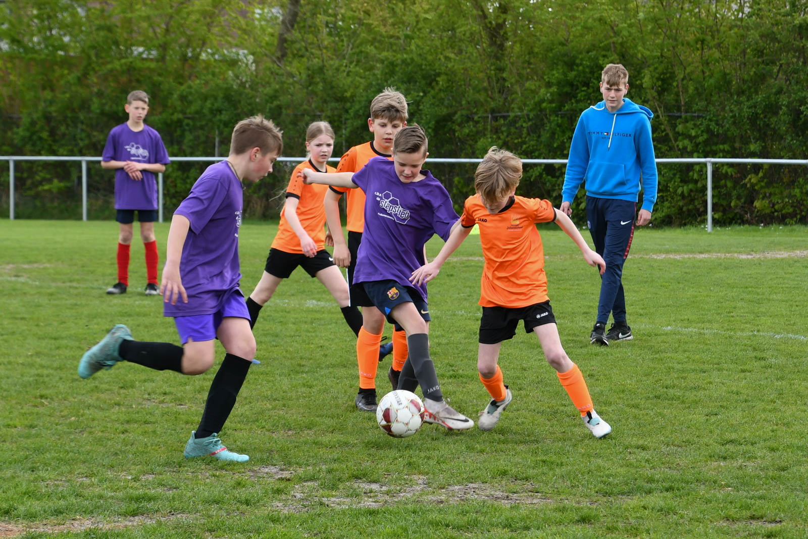 De opgave ging via het schoolvoetbal van de KNVB. Het was niet duidelijk welke club of school dit jaar het voortouw zou nemen, het kon deze keer gelukkig nog net op tijd ‘van de grond’ komen. Fijn dat een aantal scholen net zo enthousiast waren om mee te doen. Zo kon er woensdagmiddag op de velden van de Friese Boys in 3 poules worden gespeeld met 9 (gemengde) jongens teams en 2 meiden teams.
