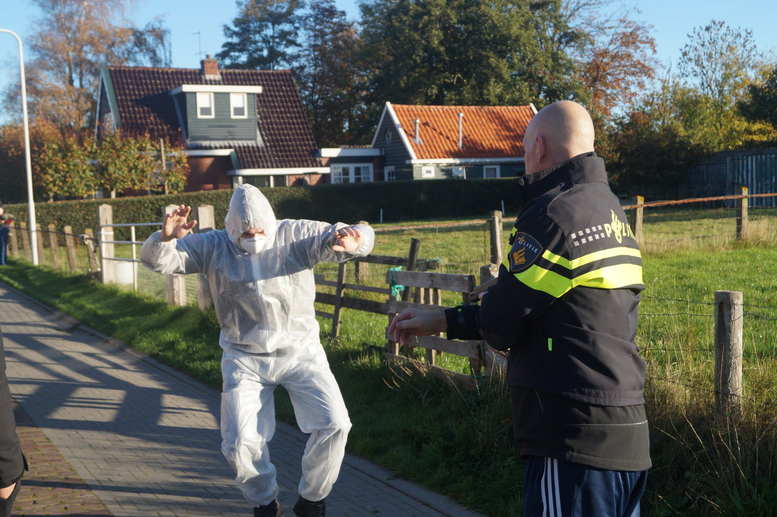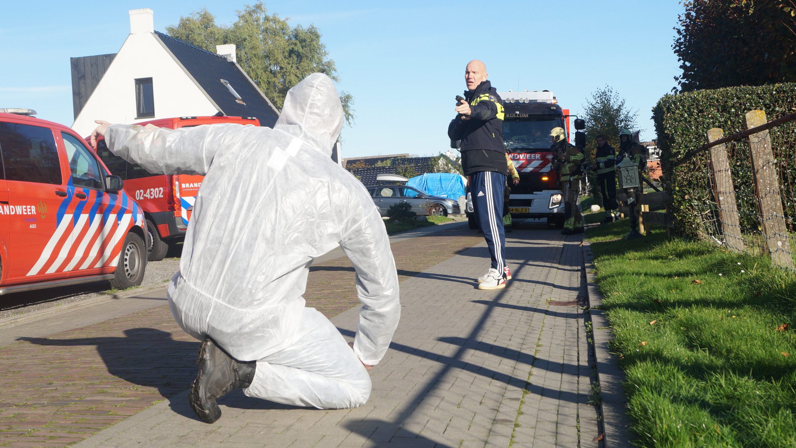 De melding begon met een ‘vreemde lucht’ in een woning in Damwâld. Toen de brandweer aankwam, volgde in het scenario een explosie. In het huis bleek een drugslab aanwezig te zijn. Eén persoon kwam naar buiten en werd aangehouden door de politie. Binnen lag volgens het oefenplan nog een slachtoffer. De brandweer zocht hiernaar in de woning.