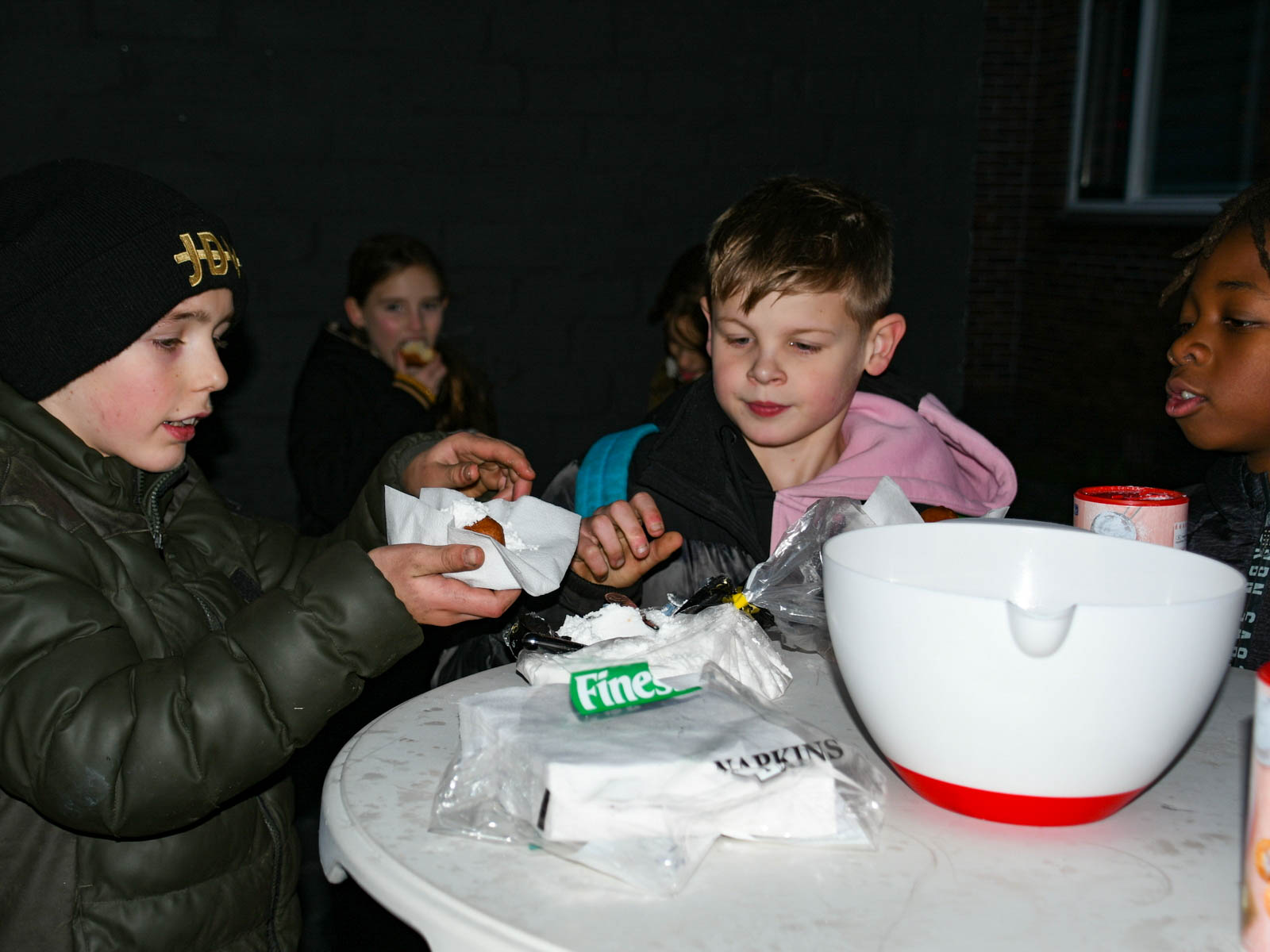 De oliebollen (gebakken door bakker Roelof, die ook club geeft aan groep 7/8) smaakten heerlijk.