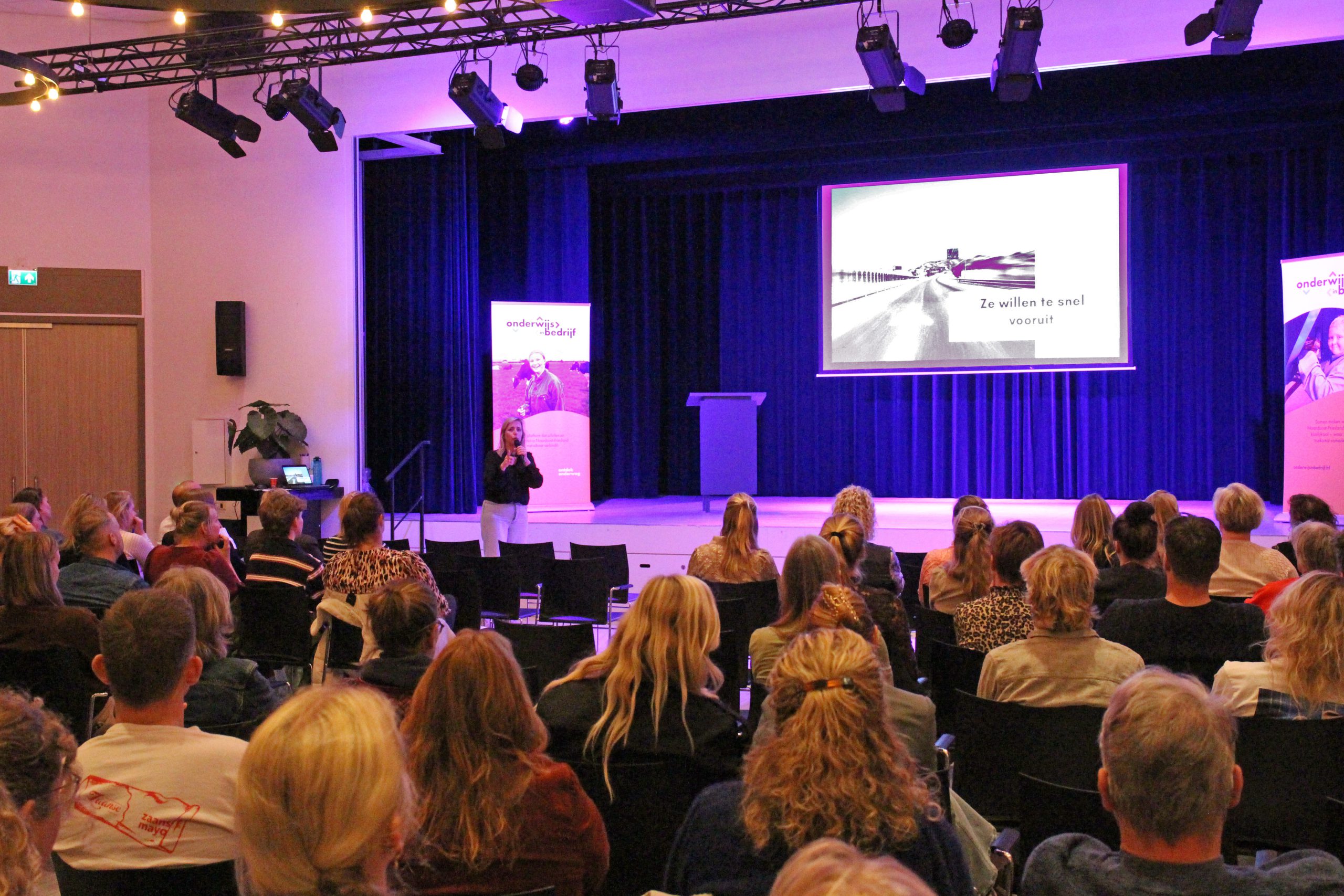 KOLLUM – Een kleine honderd onderwijsprofessionals hebben donderdag 30 oktober in Kollum inzichten, kennis en ideeën gedeeld. Een interactieve lezing over Generatie Z en diverse workshops stonden op het programma. De presentatie – een zogeheten keynote – werd verzorgd door puberexpert Janneke ter Bille. Zij sprak in theater De Colle in Campus Kollum op de jaarlijkse PO-VO-dag waarbij (vooral) leerkrachten/docenten en schoolleiders uit het primair – en voortgezet onderwijs aanwezig waren. De organisatie van de bijeenkomst was in handen van het platform Onderwijs in bedrijf.