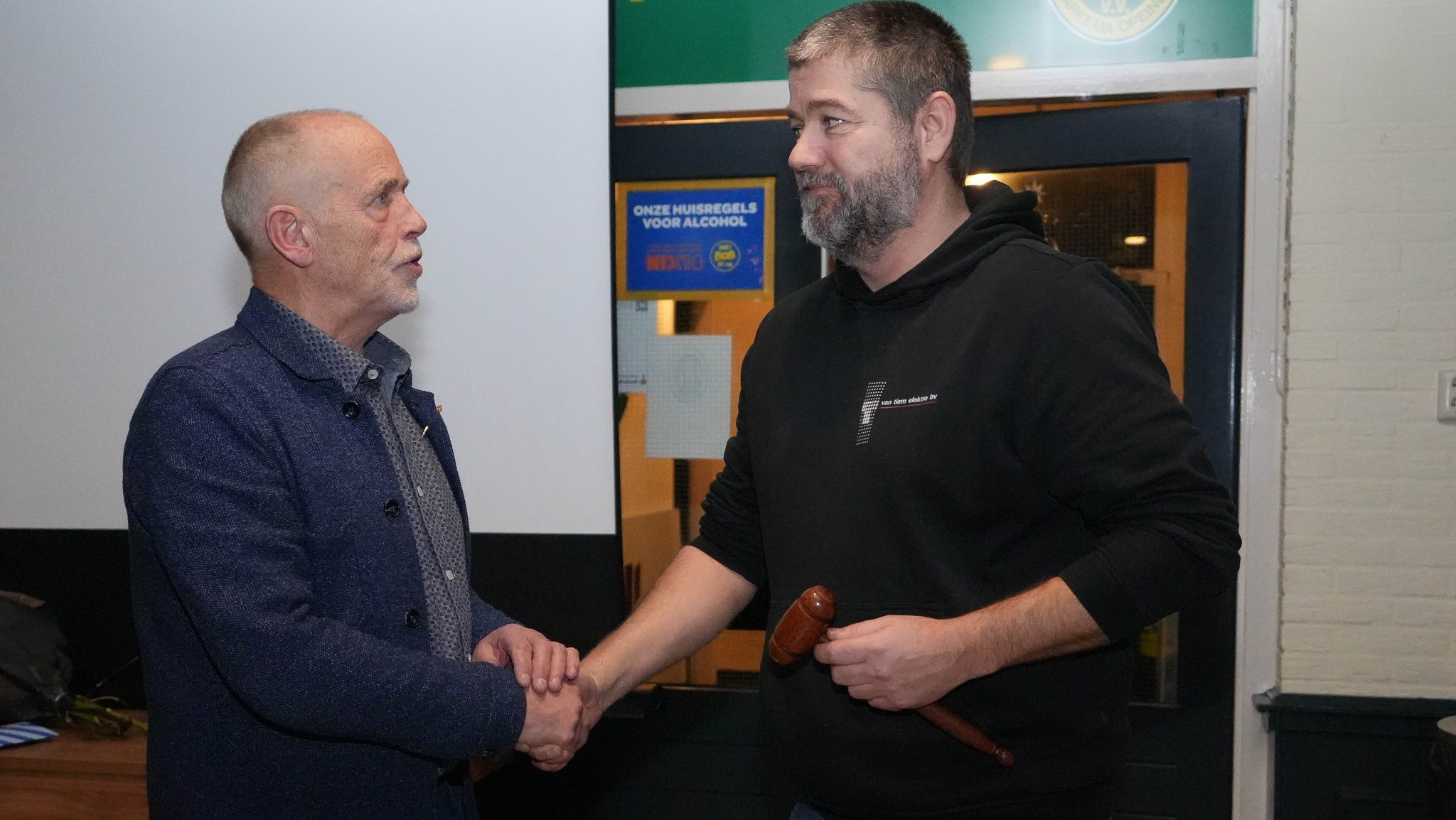 HARKEMA – De algemene ledenvergadering (ALV) van Harkema-Opeinde, gehouden op vrijdag 10 januari 2025, stond in het teken van afscheid nemende en in dienst tredende bestuursleden. Albert Schievink – die verspreid over twee periodes ruim vijftien jaar de voorzittershamer hanteerde – kreeg door Minne Modderman van de KNVB de gouden speld uitgereikt. Trouw vrijwilliger André Schievink werd door de club benoemd tot lid-van-verdienste.