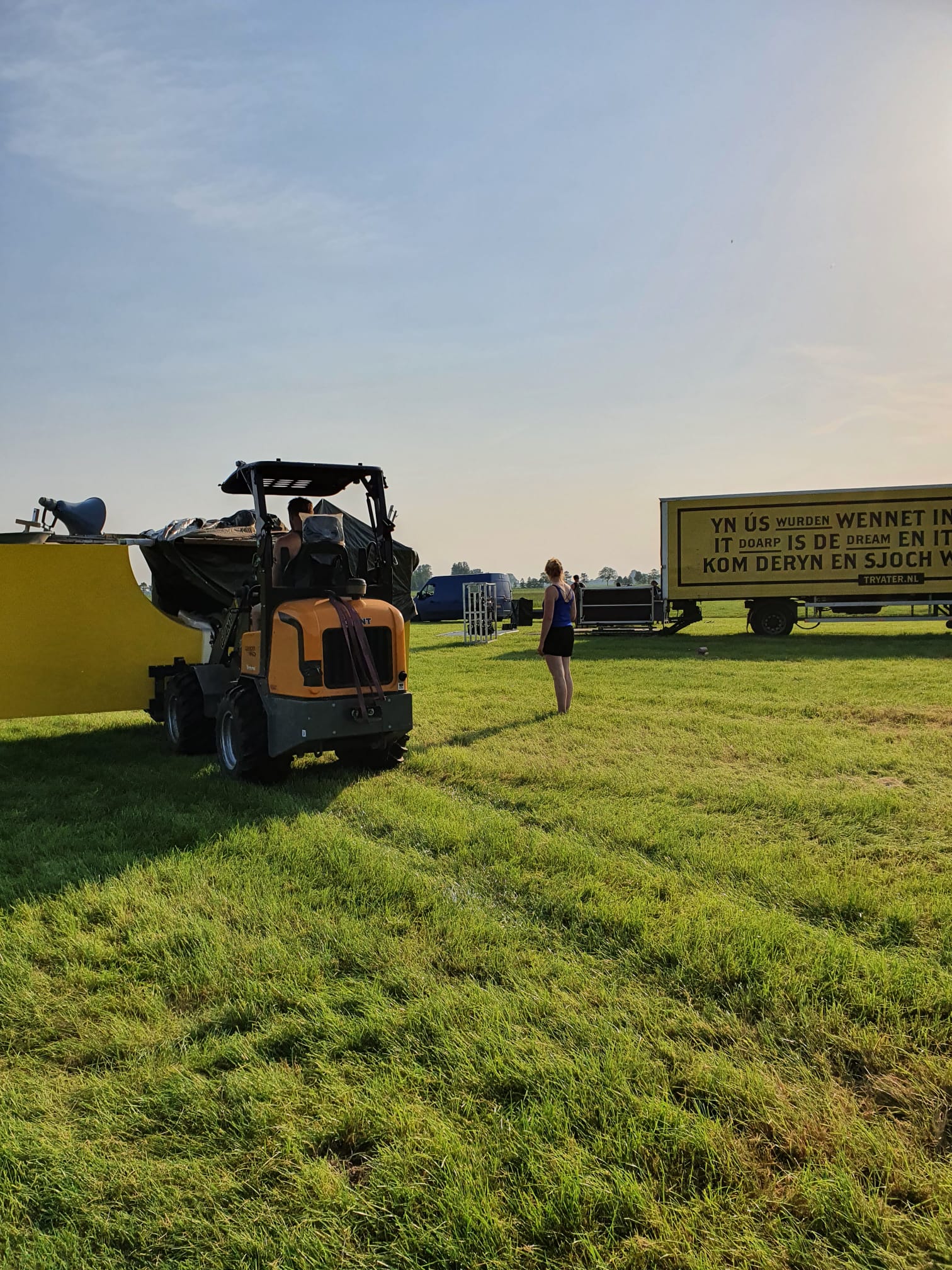 Vanochtend vroeg zijn de organisatoren en vrijwilligers gestart met de opbouw van het festival ‘de Wike fan ‘e Grutte Earen’. Het festival vindt plaats van 21 tot en met 26 juli, in een weiland naast de ‘grote oren’ van Burum. Op de heetste dag van het jaar wordt vandaag alles uit de bus gehaald. Complete bedframes, oude cassettebandjes en nog veel meer. Het festivalvol vol kunst, cultuur, natuur en wetenschap is bedoeld voor jong en oud. Of zoals ze het zelf noemen: voor de ‘grutte en lytse earen’.