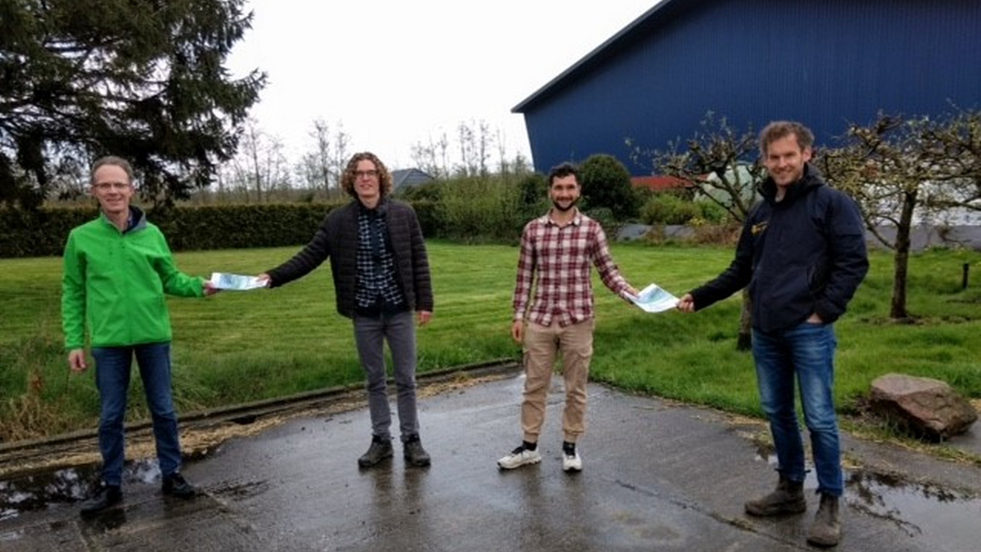 Studenten Julian de Klerk en Lodewijk Bruning van hogeschool NHL Stenden hebben op 30 april 2021 het rapport opgeleverd aan de voorzitters Joost Mulder van Ondernemers Vereniging Kollumerzwaag en Douwe Keegstra van Plaatselijk Belang Kollumerzwaag & Veenklooster.
