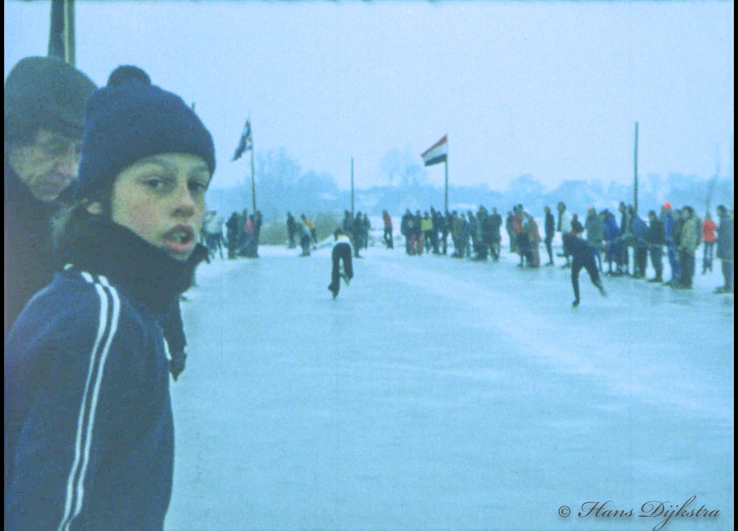 Vervolgens is hij snel naar de ijsbaan in Mûnein gegaan om opnamen te maken. Elke schaatser kwam voorbij, bijna alle voetballers van de Trynwâldster Boys waren daar, zowel van de Trynwâlden als van de zondagploeg. Geen voetbal, maar wel schaatsen!
