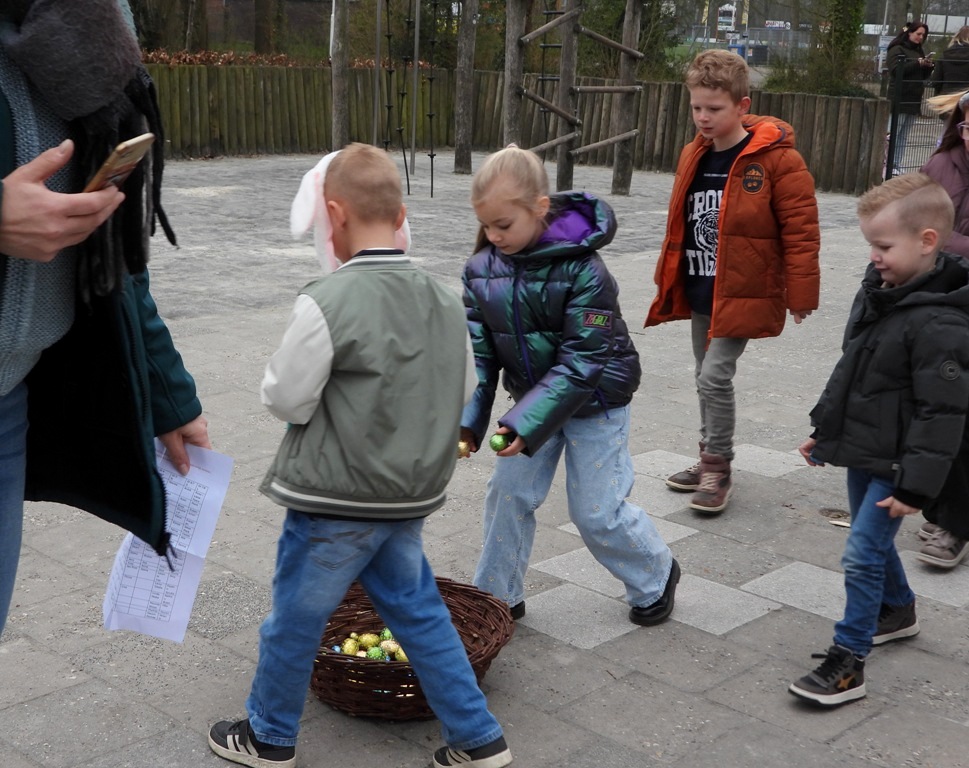 De kinderen hebben genoten van het zoeken naar gekleurde paaseieren. Tussen al die eieren zat ook drie gouden eieren wie die vonden kregen een prijsje. Elk jaar weer een prachtig gezicht. De oudste kinderen helpen de jongste kinderen met zoeken. Als alle eieren zijn gevonden, wordt alles eerlijk gedeeld. Een gezellige traditie op de dorpsschool!