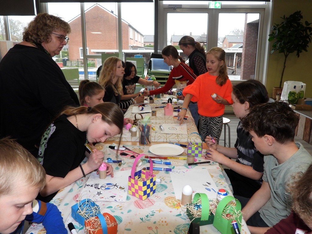 TWIJZEL – In Twijzel worden rond en tijdens de Pasen honderden met de hand beschilderde kalkeieren verspreid. Volgens beeldend kunstenaar Hetty Combs uit Buitenpost is het idee “ietsje” uit de hand gelopen. Bij basisschool de Oanrin maken de kinderen er allemaal een voor zichzelf en een voor een ander. Ook werden er prachtige Palmpaasstokken gemaakt.