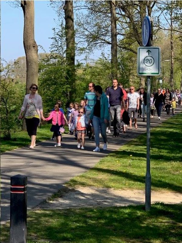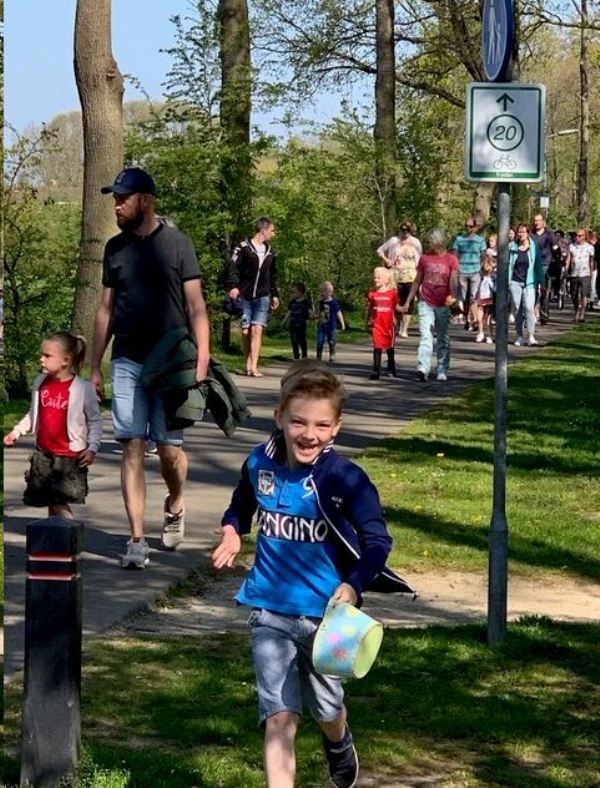Heel veel kinderen hadden zich maandagochtend, Tweede paasdag, bij sporthal de van der Bijhal in Kollum verzameld om onder begeleiding van Stichting APK richting het Hertenkamp te gaan. Het gerucht ging dat de Paashaas hier en in het Wilhelmina Park honderden eieren had verstopt.