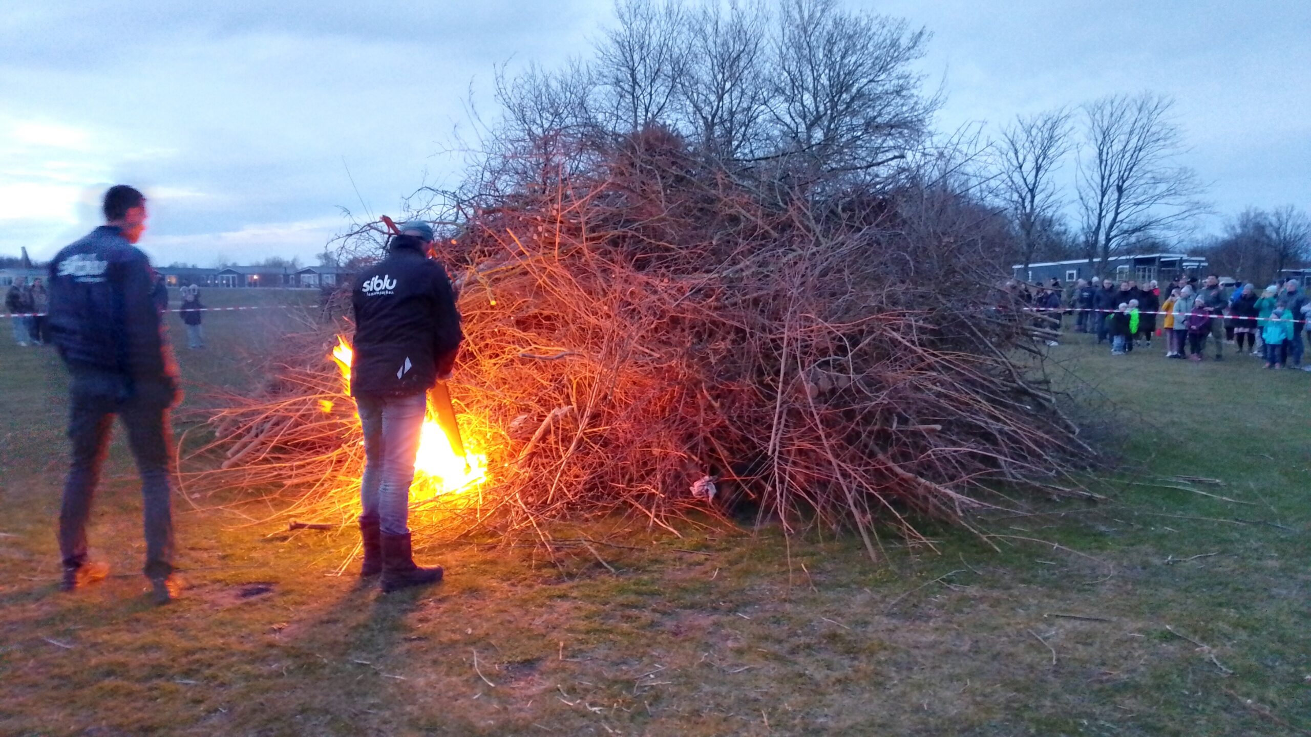 Het paasvuur werd georganiseerd door het animatieteam van de camping. Rond 20.30 uur ging de grote bult takken in vlammen op. Bezoekers verzamelden zich op het strand van Camping Siblu om het vuur te bekijken. Voor veel mensen was het een moment om samen buiten te zijn.