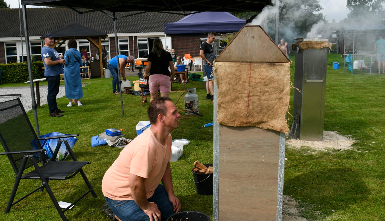 OUDWOUDE – Zaterdag 21 augustus was er op het terrein achter MFC Hústerwâld in Oudwoude door het bestuur voor de eerste keer een Palingrookwedstrijd georganiseerd. Met hulp en advies van Wietse, die het vaker in het café van Oudwoude had georganiseerd was het een goed geslaagd evenement.