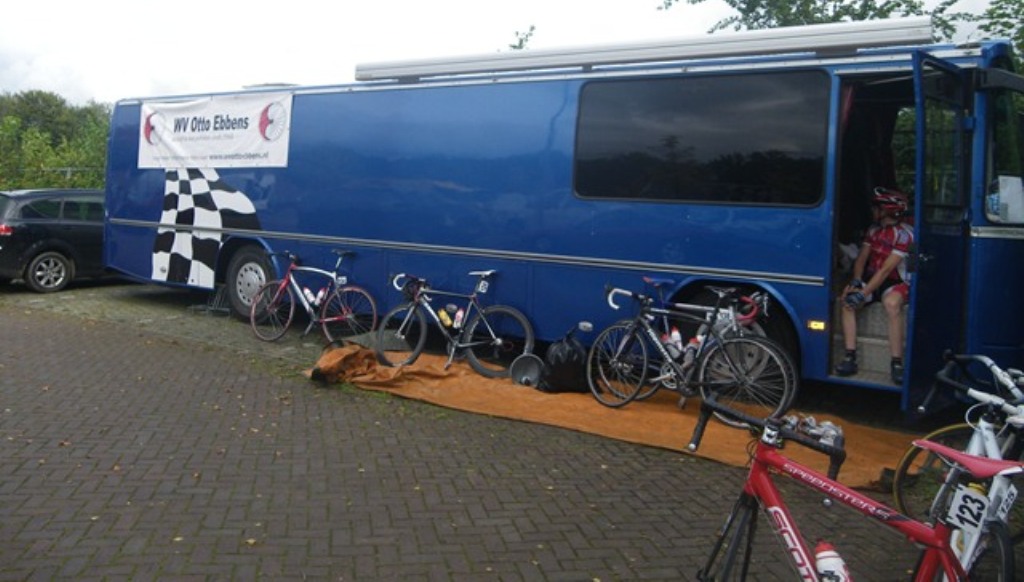 Onze vereniging plaatste zich het afgelopen voorjaar en zomer voor de finale van de clubcompetitie in Emmeloord. Net als bij het NCK een week eerder vormden Pieter Postma, Ruben Hoekstra, Sjoerd Visser, Henk Bos, Jan Hendrik Westra en Jan Dupon het zestal dat de clubkleuren van WV Otto Ebbens verdedigde. Het bestuur had nog een verrassing voor de renners in petto. Sjoerd Boersma had bij Sikkema Racing in Twijzelerheide een echte ploegbus geregeld, waarin de renners en begeleiders ook konden overnachten. Sikkema Racing stelde deze prachtige oldtimerbus belangenloos beschikbaar