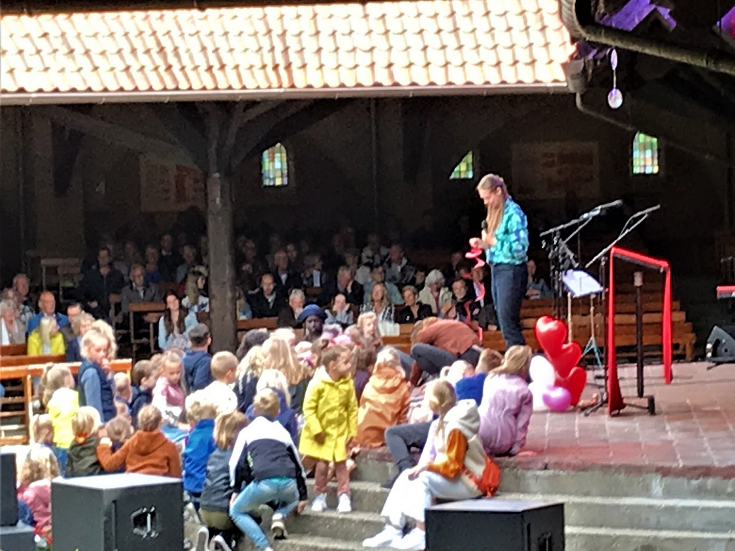 Een verhaal voor kleinen over Pinkster en een verhaal voor groten over hoe we in aandacht en liefde voor elkaar moeten leven. Aandacht voor de nood in de wereld en een collecte voor een project in Karatara in Zuid-Afrika. Vieren dat God met zijn Geest bij ons wil zijn, een Geest die ons oproept, inspireert en wil helpen om te leven in liefde voor God, de mensen en de wereld. Het was een viering waarin velen verbondenheid met God, met elkaar en de wereld hebben ervaren. Het samen koffiedrinken na afloop in het zonnige park was een prachtige afsluiting.