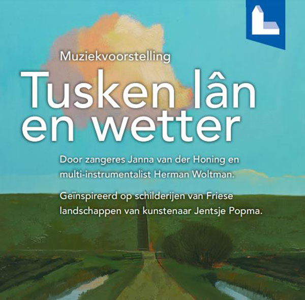 Zangeres Janna van der Honing en multi-instrumentalist Herman Woltman brengen samen met kunstkenner Jan Henk Hamoen de muziekvoorstelling ‘Tusken lân en wetter’.
