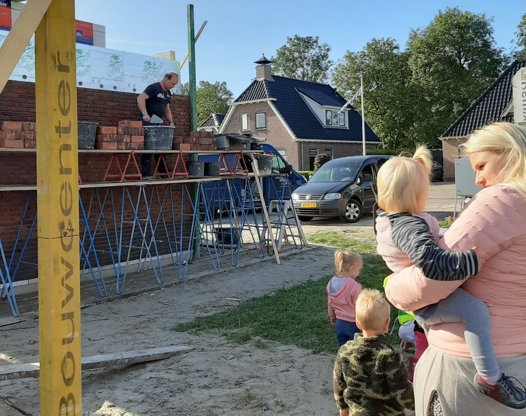 Al met al een heel leerzaam thema, maar het wordt nog leuker en leerzamer als je het in de praktijk kunt laten zien. Daarom gingen de peuters van Peuter speel groep De Pompebledsjes kijken bij de bouw van een nieuw huis in Kollumerpomp. Ze konden zien hoe de metselaars een muur van het huis metselden. Ook werd er onderweg nog gekeken naar de verschillen tussen de huizen.
